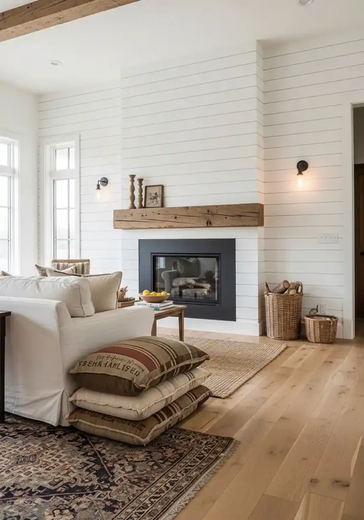 1. The Shiplap Accent Wall: Horizontal Texture That Defines the Farmhouse Character