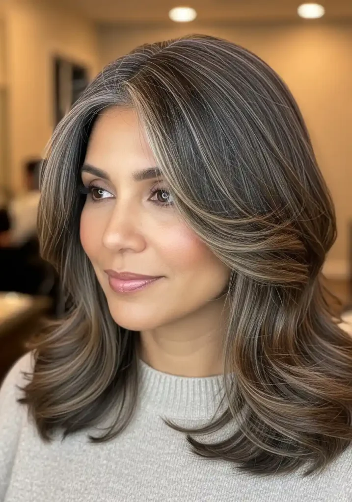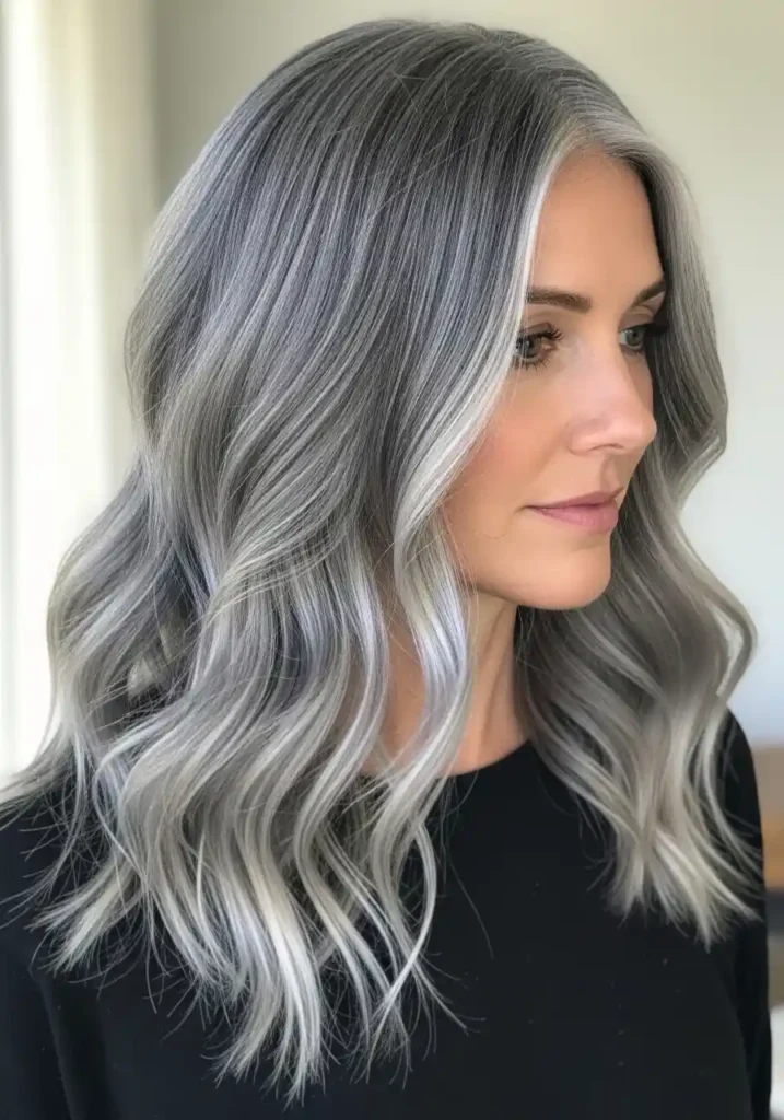 The balayage gray blend works particularly well for women with naturally wavy or curly hair, where the freehand painted tones interact with the natural texture to create a color distribution that follows the individual curve of each wave or curl in a way that appears completely natural and completely in harmony with the hair’s own movement pattern. The grow-out quality of balayage gray blending is one of its most celebrated practical advantages, as the freehand technique creates no obvious root line that makes new growth immediately visible, meaning the blend continues to look beautiful and intentional for four to six months between appointments rather than the four to six weeks required by traditional root touch-up services.