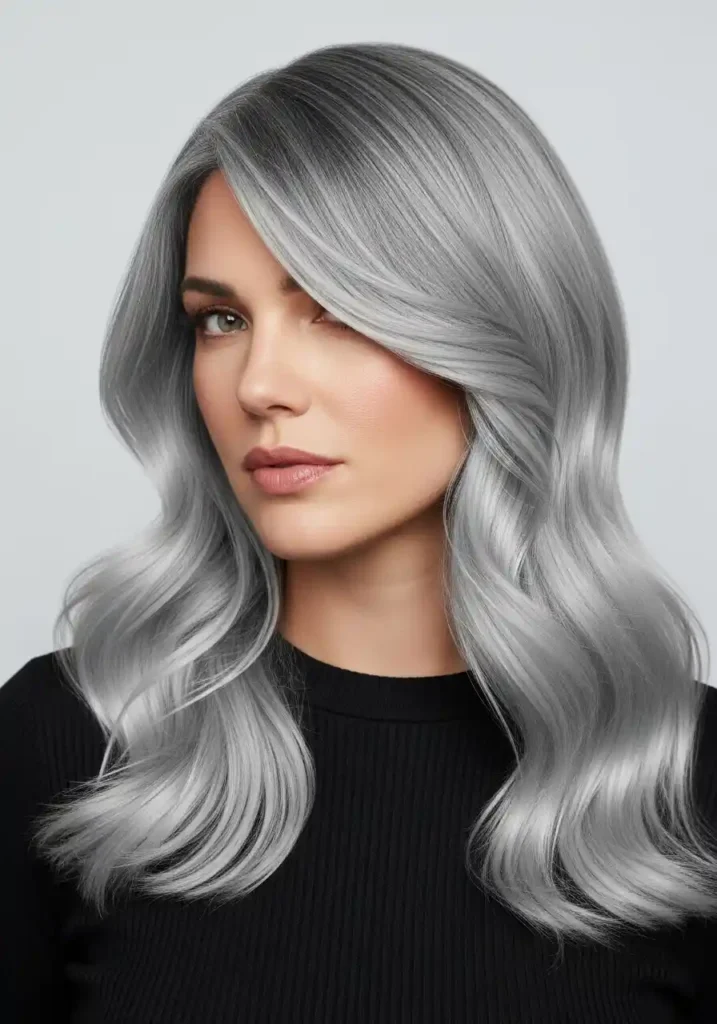 The full seamless gray transformation represents the most complete and most technically sophisticated expression of everything the gray blending philosophy has been building toward throughout this entire collection, bringing together every available technique, from root smudging and babylights to lowlights and glossing, into a single, comprehensive color service that creates a result in which the natural gray and the artificial color elements are so perfectly harmonized that the distinction between them becomes effectively invisible and the overall impression is of a single, unified, multidimensional color of extraordinary natural beauty and sophisticated elegance. This is the transformation that changes everything.