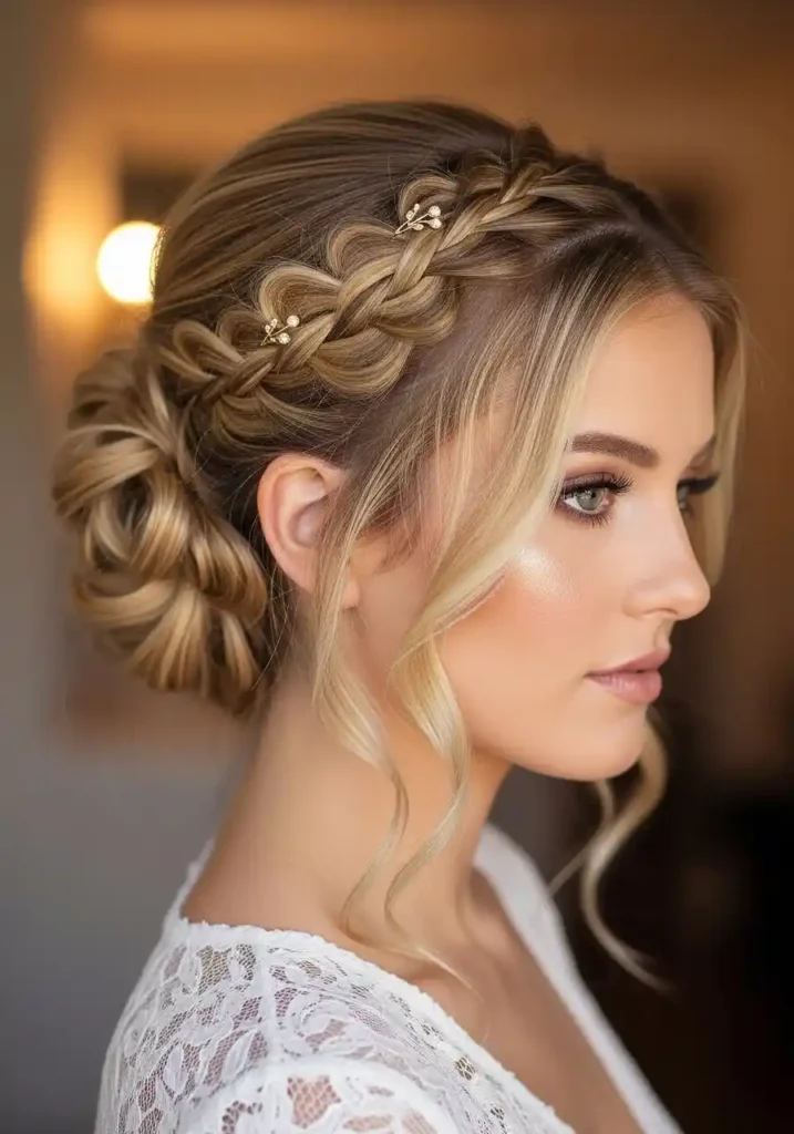 A braided updo with loose face-framing pieces is the formal and special occasion hairstyle that most beautifully honors the oval face’s natural balance — the updo’s elevated, structured arrangement adds height and elegance above the head level while the loose face-framing pieces maintain the warm, intimate connection between the hairstyle and the face’s specific features. On an oval face, the loose pieces beside the cheekbones and alongside the jaw create a gentle, romantic frame that celebrates these features’ natural definition rather than concealing or correcting them.