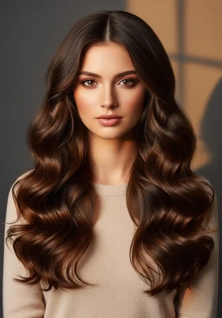 Long romantic curls with a center part on an oval face create one of the most timelessly beautiful hairstyle compositions available — the generous, flowing quality of the curls on both sides of the center part creates a symmetrical abundance that perfectly complements the oval face’s own quality of generous, balanced proportion. The curls frame the face with a warmth and richness that straight long hair cannot replicate, adding visual complexity and textural luxury to a hairstyle that is fundamentally simple in its structure but extraordinarily beautiful in its execution.