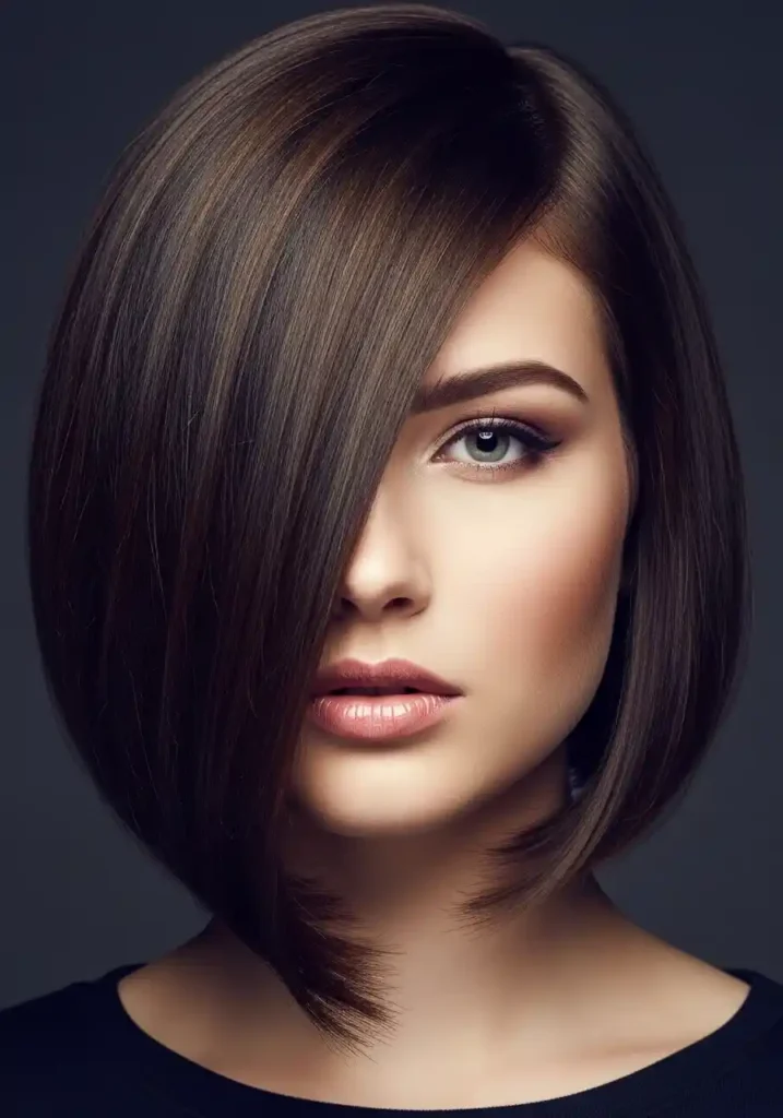 The asymmetric bob is one of the most effectively flattering haircuts for round faces because its fundamental design principle — one side deliberately longer than the other — creates the diagonal lines that are the most powerful flattering tool for round face shapes. The diagonal created by the asymmetric bob disrupts the face’s natural circular symmetry from both the front and the profile views, making the face appear more angular and more defined from every angle simultaneously. The longer side, which partially covers one side of the face, reduces the face’s apparent width on that side while creating a strong downward-pointing focal point.