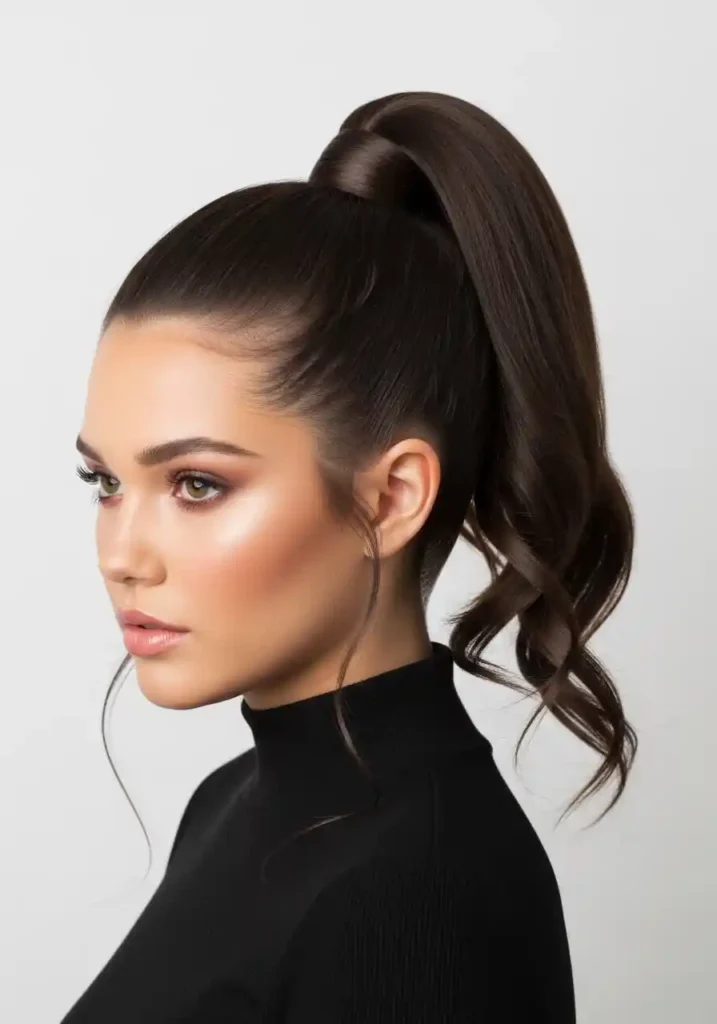 A high ponytail positioned at the very crown of the head is one of the most immediately effective round face flattery techniques available because it adds vertical height in the most direct possible way — by physically elevating the hair above the head and creating a tall silhouette that draws the eye upward and makes the face appear significantly longer and more defined than it does with the hair down. The higher the ponytail, the more pronounced the elongating effect, which is why the very top of the crown is the ideal positioning for a round face.