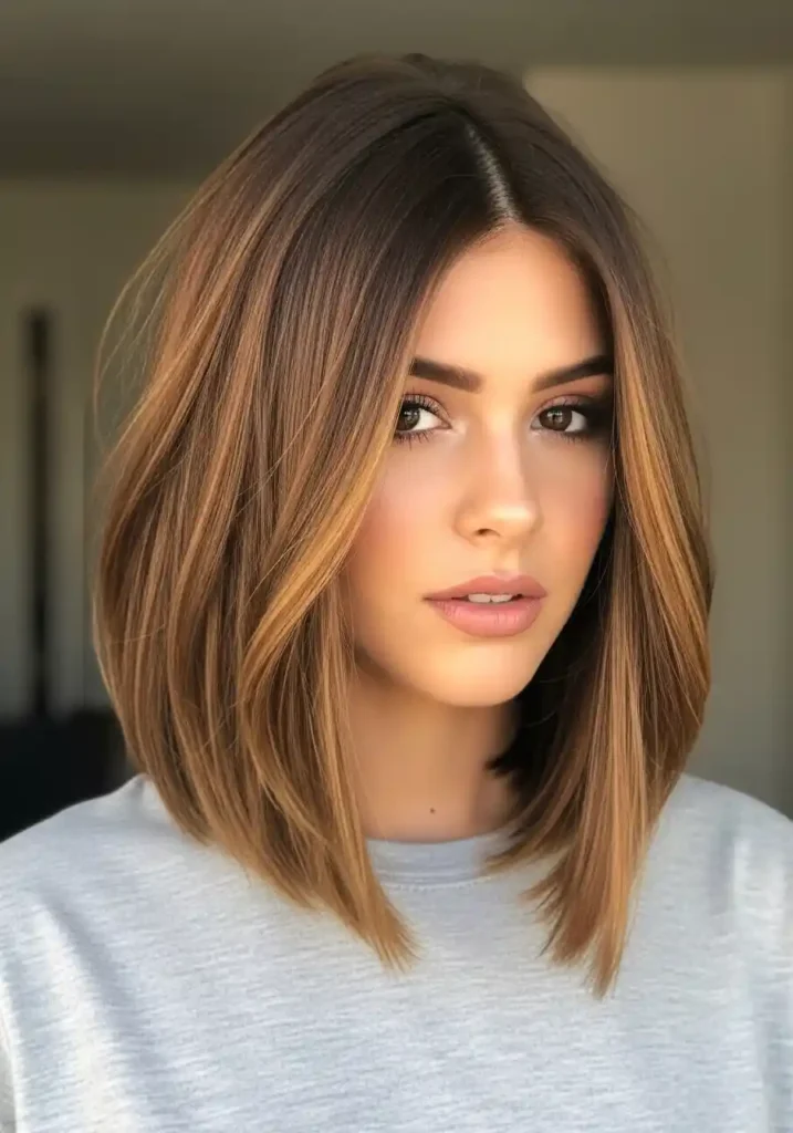 The textured quality of the lob is equally important to the flattering effect — a smooth, straight lob with face-framing highlights is beautiful, but a textured lob with natural movement and separation creates additional visual depth that makes the face appear more three-dimensional and therefore more defined. The texture also adds vertical movement through the lob’s length that reinforces the elongating effect of the face-framing highlights. Request that your colorist place the lighter highlights in a column of approximately two inches width on each side of the face, concentrated from the temples to the jaw level for the most effective and most beautiful face-framing illumination.