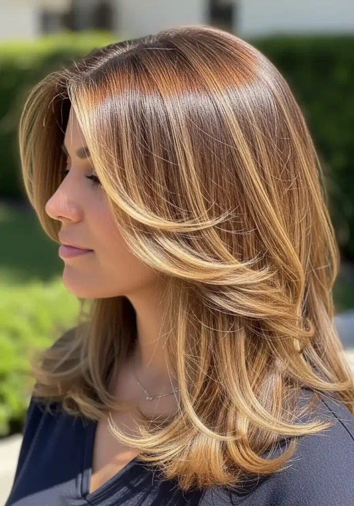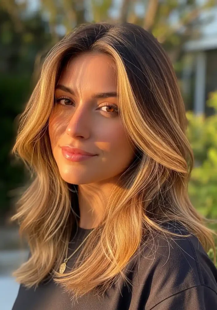 Honey blonde highlights woven through medium to dark brown hair create one of the most warmly beautiful and naturally dimensional color results imaginable, introducing golden warmth into a brown base in a way that transforms the overall appearance of the hair from flat and one-dimensional to rich, complex, and genuinely luminous without requiring the complete color transformation that a full honey blonde application would demand. The honey pieces catch light with a golden brilliance that makes the entire head of hair appear to glow from within, with the contrast between the warm golden highlights and the deeper brown base creating a tonal range that has an almost three-dimensional quality when the hair moves and catches different light sources throughout the day.
