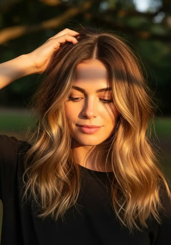Honey blonde enhanced with deeper caramel dimensional highlights creates a hair color of such extraordinary warmth and tonal richness that it appears to have the depth of professionally created color and the naturalness of hair that developed beautifully over years of outdoor living simultaneously, achieving the most coveted combination of deliberately crafted beauty and organic authenticity. The caramel pieces sit slightly deeper and richer than the honey blonde base, creating shadows within the overall color that give it a genuine three-dimensional quality, as though the warmth has depth and layers to it rather than existing as a single flat plane of golden color. The overall effect is luxuriously beautiful.