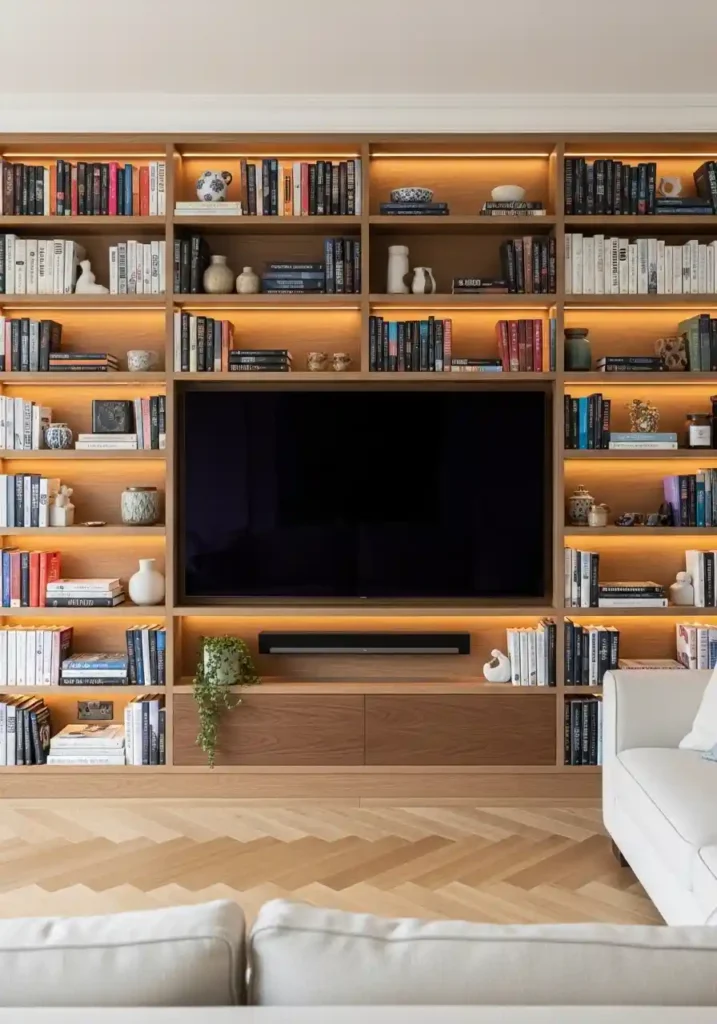 13. The Bookshelf TV Integration: Intellectual Warmth Surrounding Technology