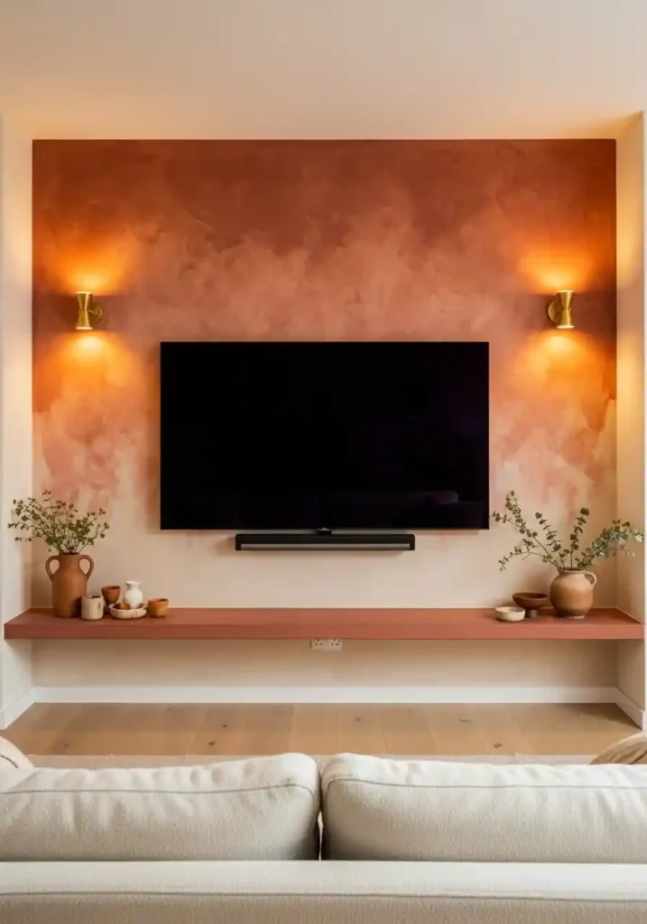 11. The Limewash Paint TV Wall: Artisan Surface for Contemporary Style