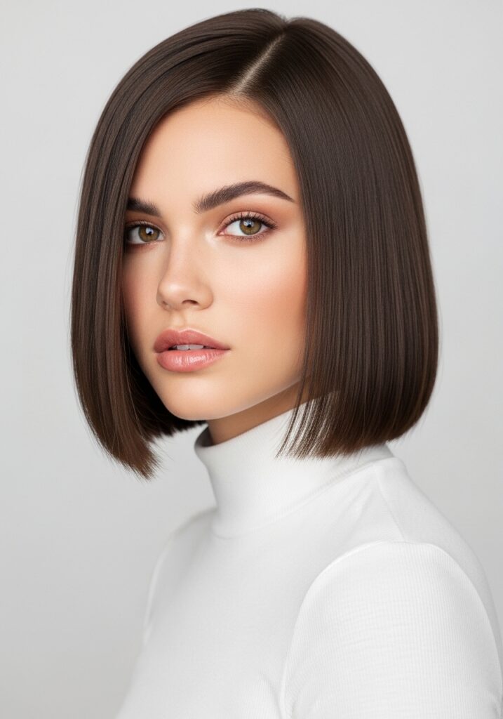 The classic blunt lob is the purest and most definitively clean version of the long bob concept — a single, precisely cut perimeter at collarbone length with no graduation, no internal layering beyond the minimum necessary for movement, and a weight line of complete, architectural clarity that creates the cut’s signature clean modern impact. The blunt perimeter is the design element that gives this lob its specific visual authority — the single clean line communicates precision, intention, and complete confidence in the haircut’s fundamental design.