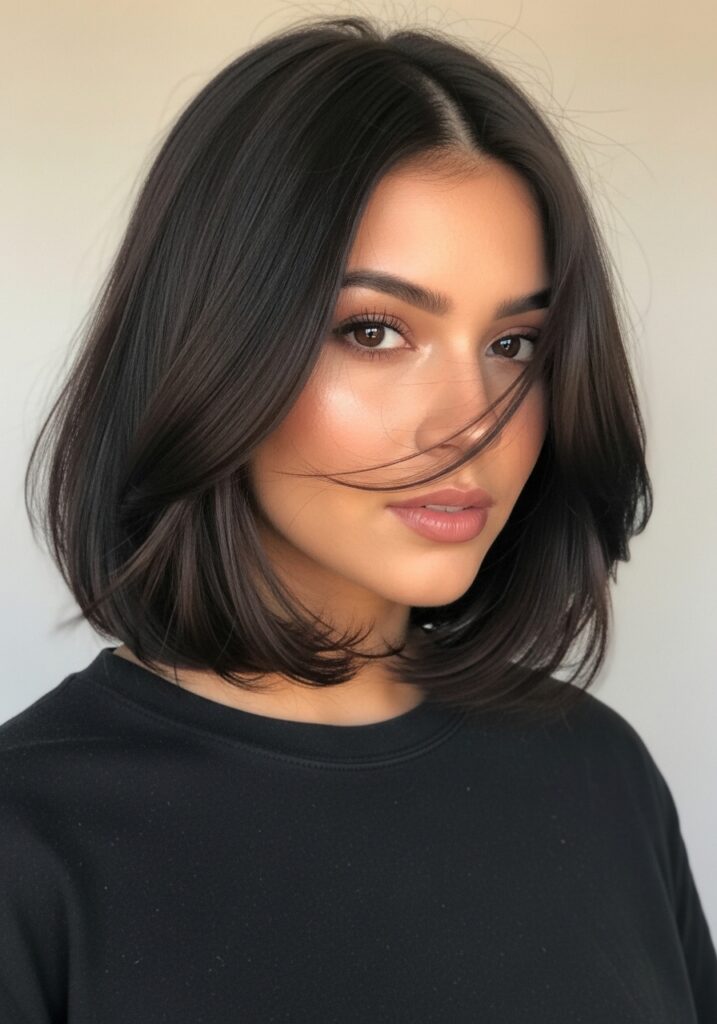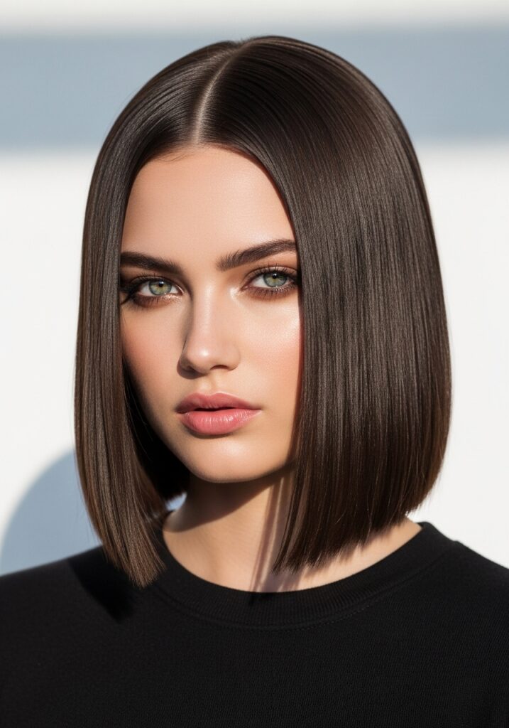 A sleek straight lob with a clean center part creates the most specifically modern and most coolly precise version of this hairstyle — the combination of the center part’s formal symmetry and the glass-smooth straight styling creates a lob of complete, deliberate precision that communicates genuine aesthetic confidence and thorough design intention. Every detail is resolved, every surface is smooth, and every element contributes to the same unified aesthetic of clean, modern, effortlessly sophisticated beauty that makes this the most consistently photographed lob styling approach.