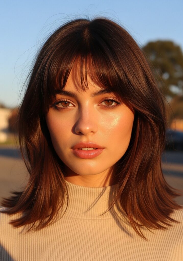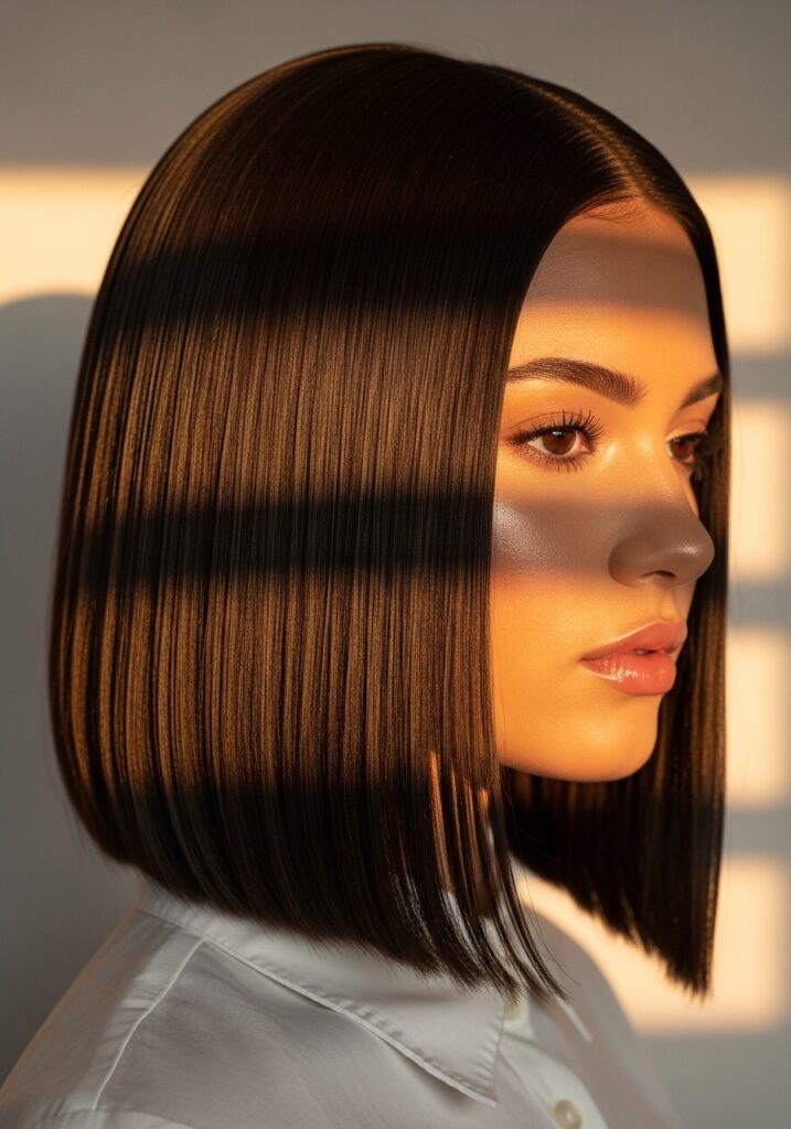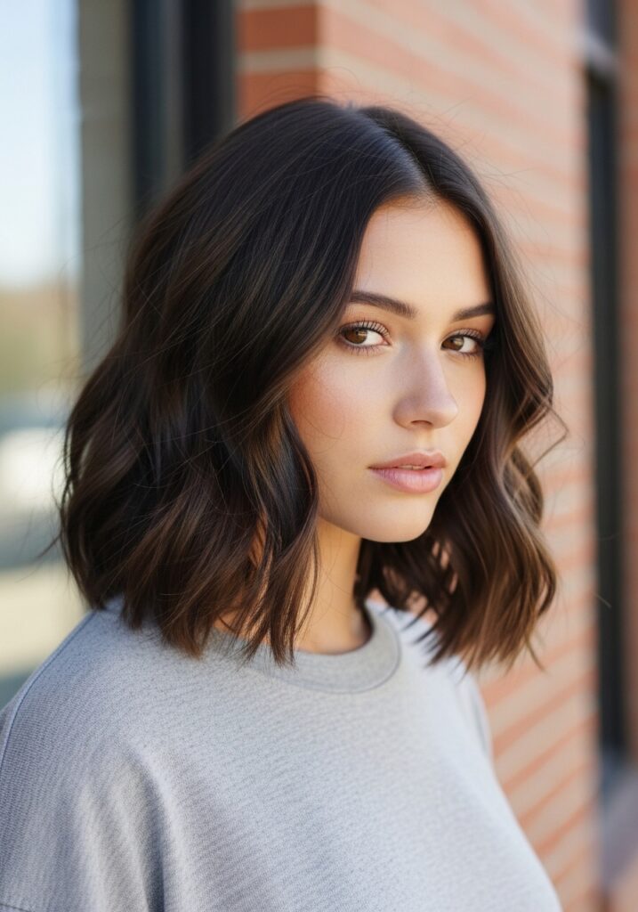 A lob styled to velvet smoothness for winter creates the most seasonally appropriate and most luxuriously winter-beautiful version of the long bob — the rich, deeply smooth styling that takes advantage of winter’s natural low-humidity conditions to achieve a surface smoothness that is genuinely more perfect and more deeply beautiful in cold-weather months than in the humidity of summer. The deep, warm brunette tones of a rich winter lob absorb and re-emit the warm amber light of indoor winter environments with extraordinary depth and richness.