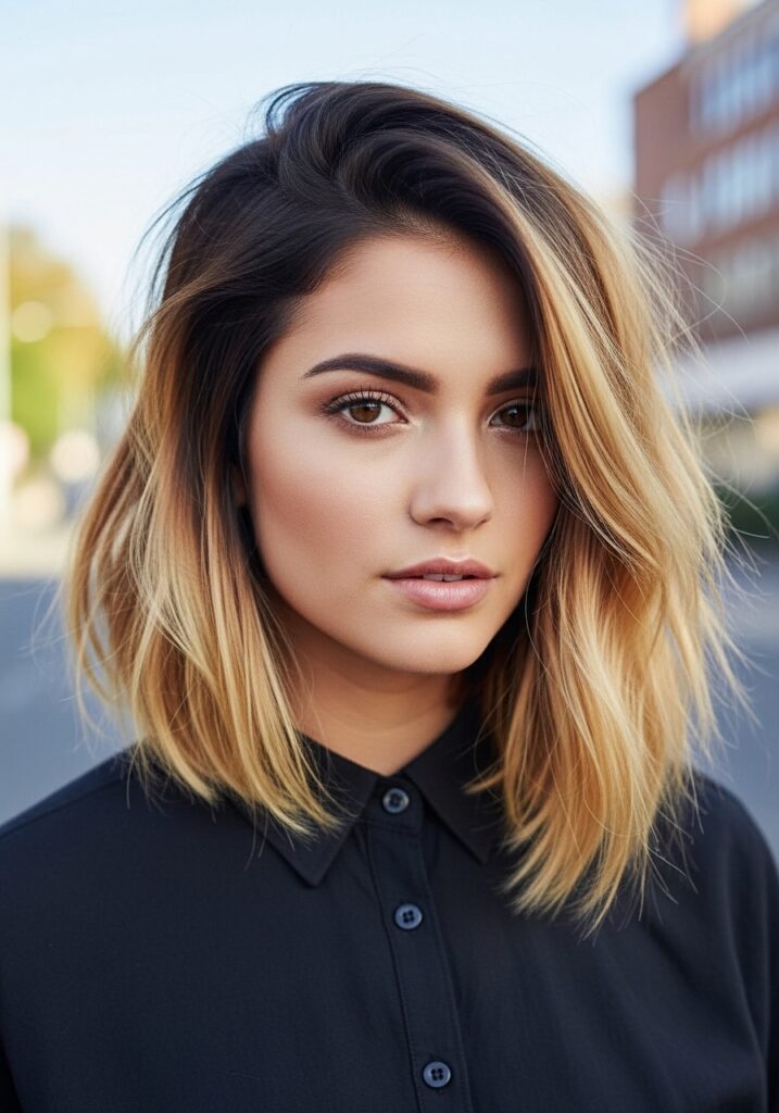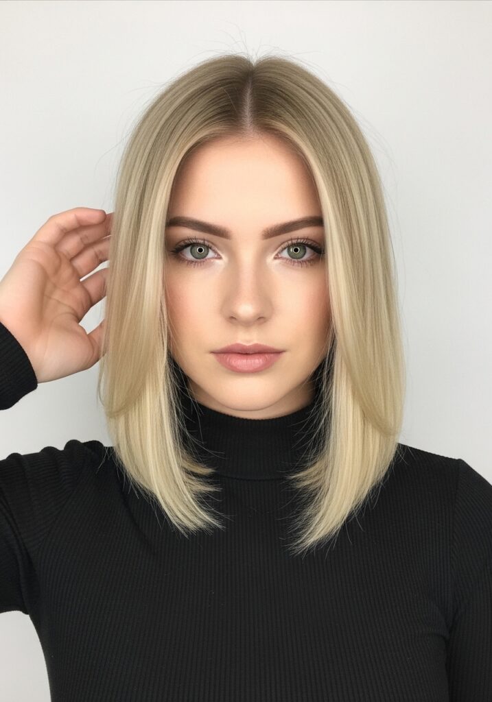 A lob with naturally maintained dark roots above warm blonde lengths creates the most effortlessly maintained and most organically beautiful long bob color approach — the dark roots provide a natural depth at the scalp that makes the warm blonde lengths appear more luminous by contrast, creating a dimensional color quality that improves with each week of natural root growth rather than requiring correction. This approach treats the root growth as the color’s most beautiful element rather than as a problem requiring urgent correction.