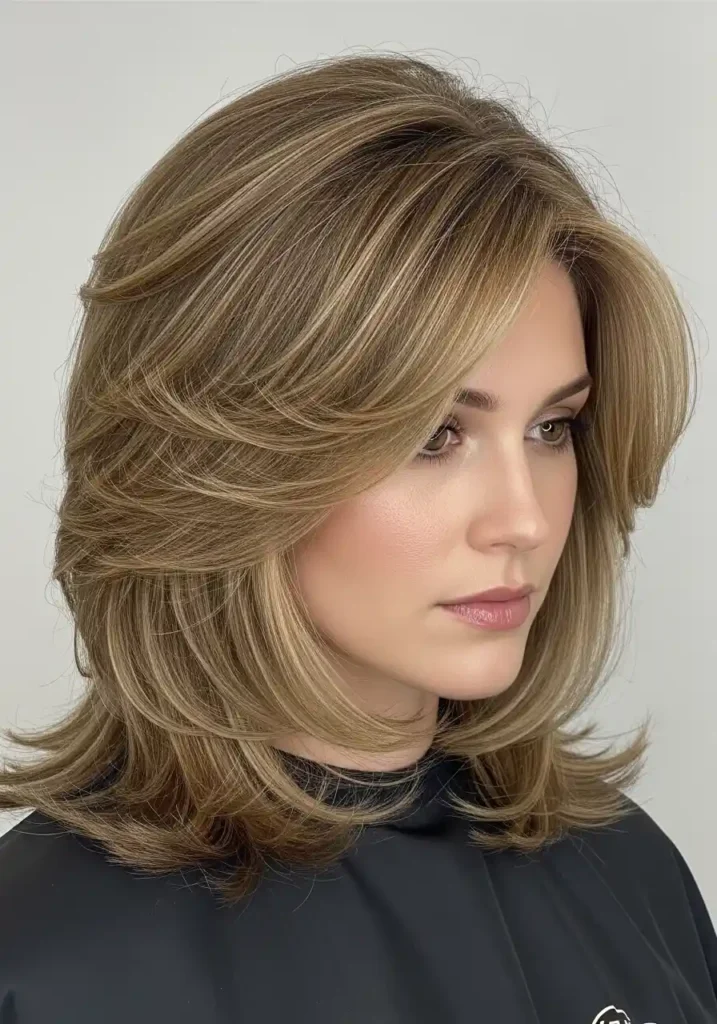 Feathered layers create delicate wispy texture through specific cutting techniques that thin the ends while creating gentle graduation throughout lengths. The signature flipped ends—achieved through round-brush blow-drying—add feminine softness and movement that feels romantic and nostalgic. This technique particularly suits fine to medium hair textures that benefit from the lightness feathering creates without removing so much density that ends become stringy. The feathered approach creates gentle face-framing that flatters most face shapes while adding that coveted 70s-inspired aesthetic that’s currently experiencing revival across fashion and beauty trends.