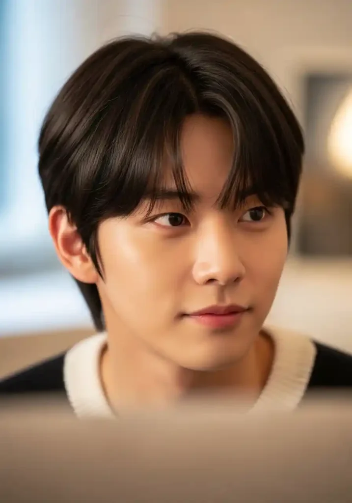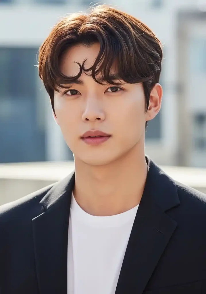 The soft curtain bang style is perhaps the single most romantically beautiful and most K-drama-associated Korean men’s haircut look, using a center-parted fringe that falls softly on both sides of the forehead in a face-framing arrangement that creates an intimate, slightly vulnerable softness at the hairline that no other styling approach can replicate with the same genuine warmth and personal charm. The curtain bang frames the eyes with a gentle, feathered quality that has become so associated with Korean drama leading men that the style itself communicates a specific romantic archetype the moment it is observed.