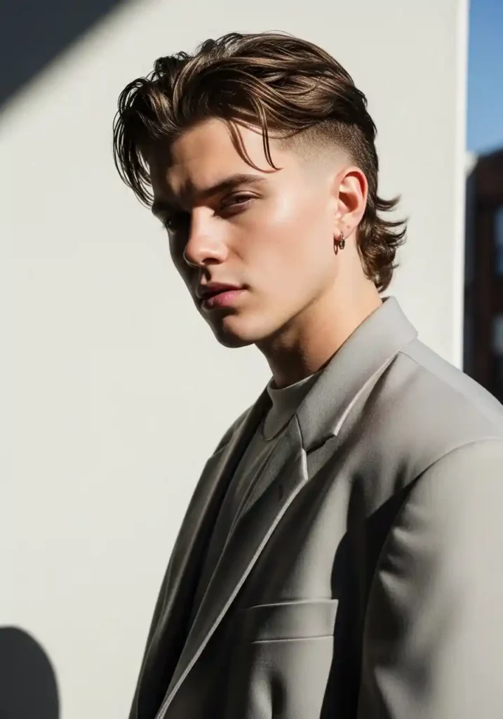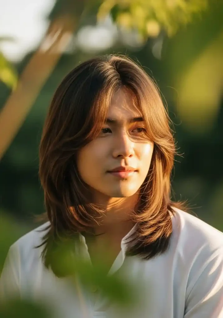 The specific qualities that distinguish a Korean mullet from other contemporary mullet interpretations are the consistent emphasis on hair health and natural gloss throughout both the shorter front sections and the longer back, the use of soft, graduated layers through the longer back that create natural movement rather than a single, blunt length, and the styling approach that uses light, natural-finish products rather than heavy, hold-focused products that would create the stiff, unnatural quality inconsistent with Korean grooming aesthetics. The result is a mullet that photographs with a flowing, naturally beautiful quality that makes the length contrast appear as an elegant design choice rather than a deliberately rebellious statement, appealing to men who want the creative distinction of a mullet within a more polished, more broadly wearable aesthetic framework.