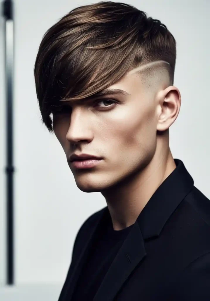 The Korean fringe with undercut combination creates one of the most dramatically impactful and most visually striking looks available in the Korean men’s haircut repertoire, using the maximum contrast of shaved or very closely cropped sides to create a clean, extreme framework that makes the longer fringe at the front appear even more face-framing and more romantically present by contrast with the closely cropped severity of the sides below and around it. The contrast between the soft fringe and the clean undercut creates a look of considerable visual sophistication and genuine bold confidence.