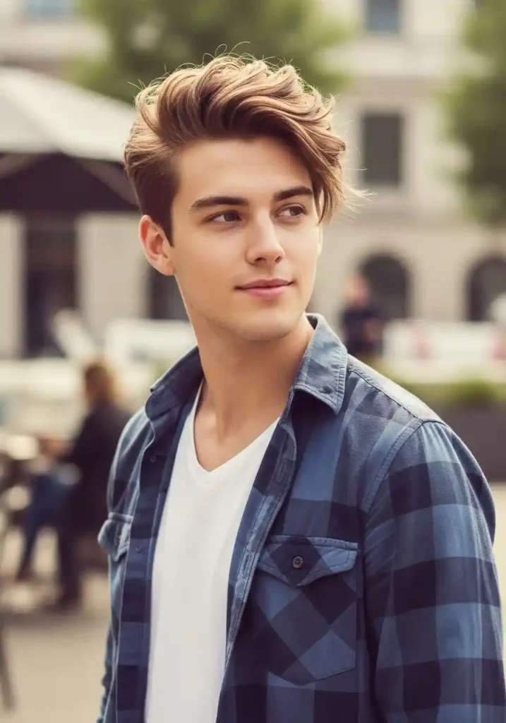 The Korean side swept style creates one of the most casually elegant and most naturally handsome looks in the Korean men’s haircut catalog, using a soft, one-sided sweep of naturally moving hair to create a face-framing, gently asymmetric aesthetic that communicates a specific, relaxed confidence and a natural ease with personal styling that reads as thoroughly effortless and thoroughly appealing simultaneously. The side sweep in Korean styling is never stiff or product-heavy but rather appears as though the hair has simply and naturally decided to fall in this particularly beautiful direction.