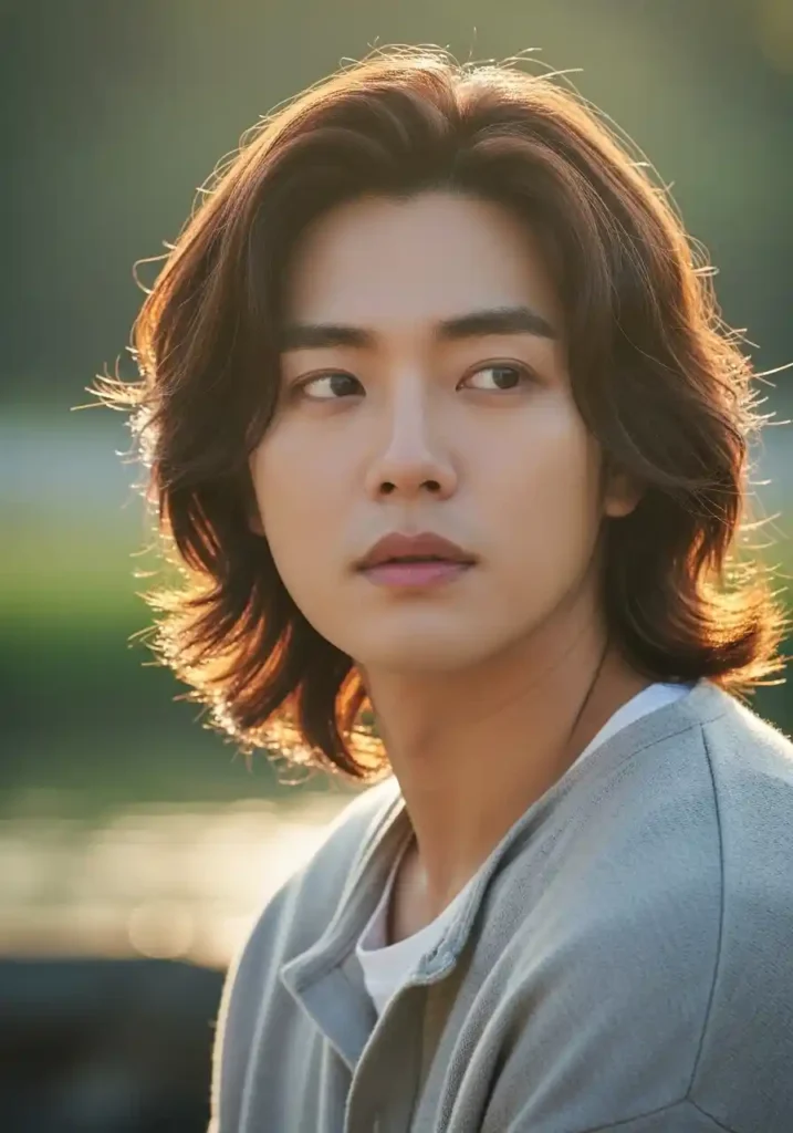 Long Korean hair with a middle part creates one of the most dramatically romantic and most completely expressive looks available in the Korean men’s hair aesthetic, using a medium-to-long length that allows the natural movement and flowing quality of the hair to display itself fully in a way that shorter Korean styles cannot achieve, combined with a center part that frames the face with perfect symmetry and creates the specific romantic, slightly otherworldly quality associated with K-drama leading men in the most sweeping, most emotionally resonant storylines. This length and part combination is iconic.