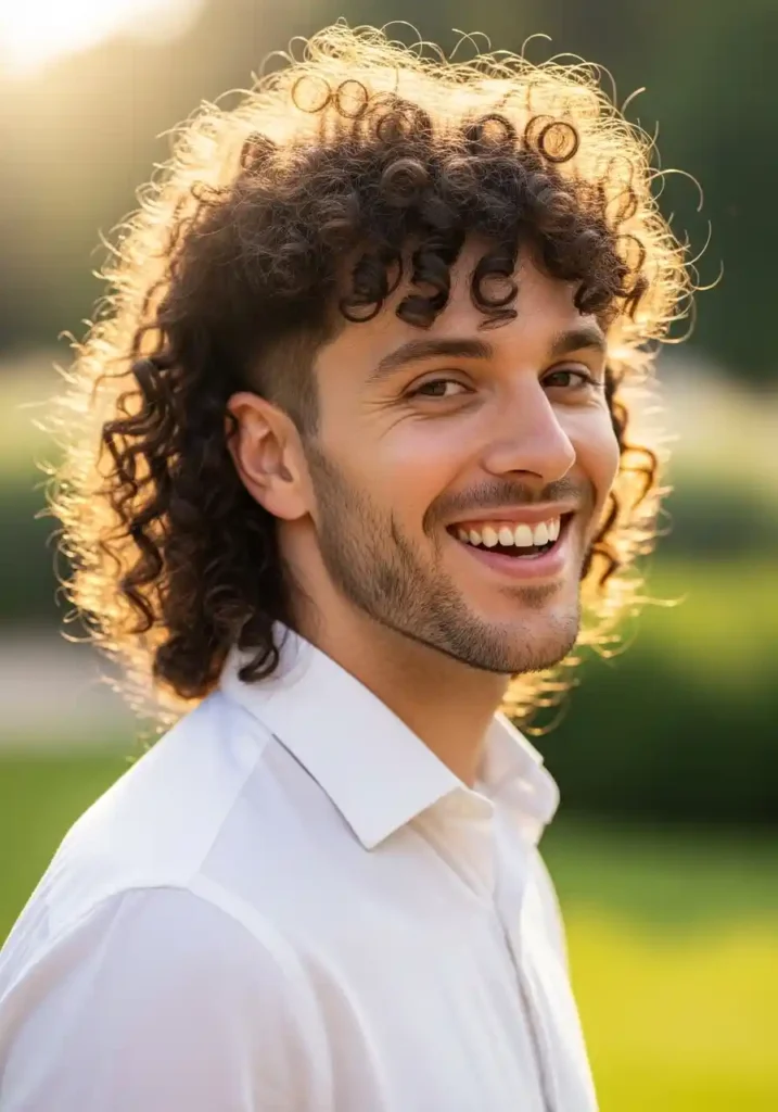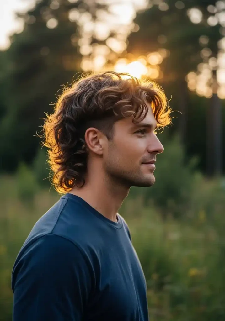 The specific way curl patterns interact with the mullet structure is particularly beautiful at the back of the head, where longer curls fall with a natural cascade of spiral texture that creates an extraordinary display of movement and dimensionality that makes the back of a curly mullet look like a genuinely artistic achievement rather than simply a haircut. Men with naturally curly or wavy hair who embrace the curly mullet consistently discover that this is the haircut that most completely and most joyfully celebrates everything wonderful about their natural texture, allowing the curls to express themselves fully at both the volume-creating top and the length-showcasing back without the weight and management challenges of overall longer lengths. A curl-defining cream enhances the natural pattern beautifully.