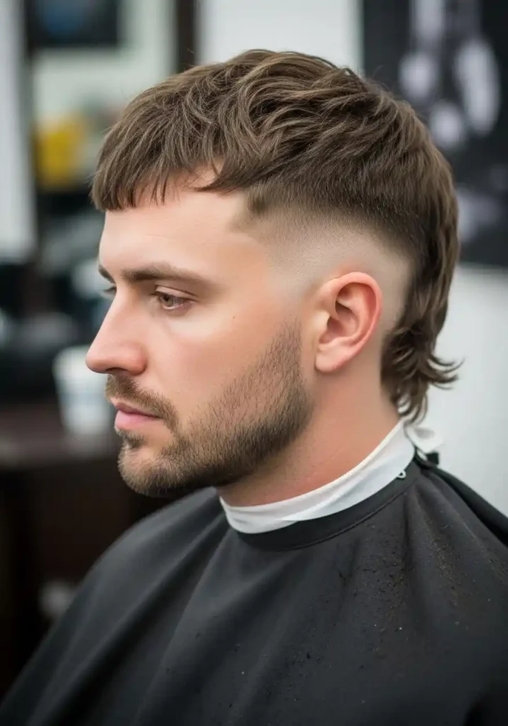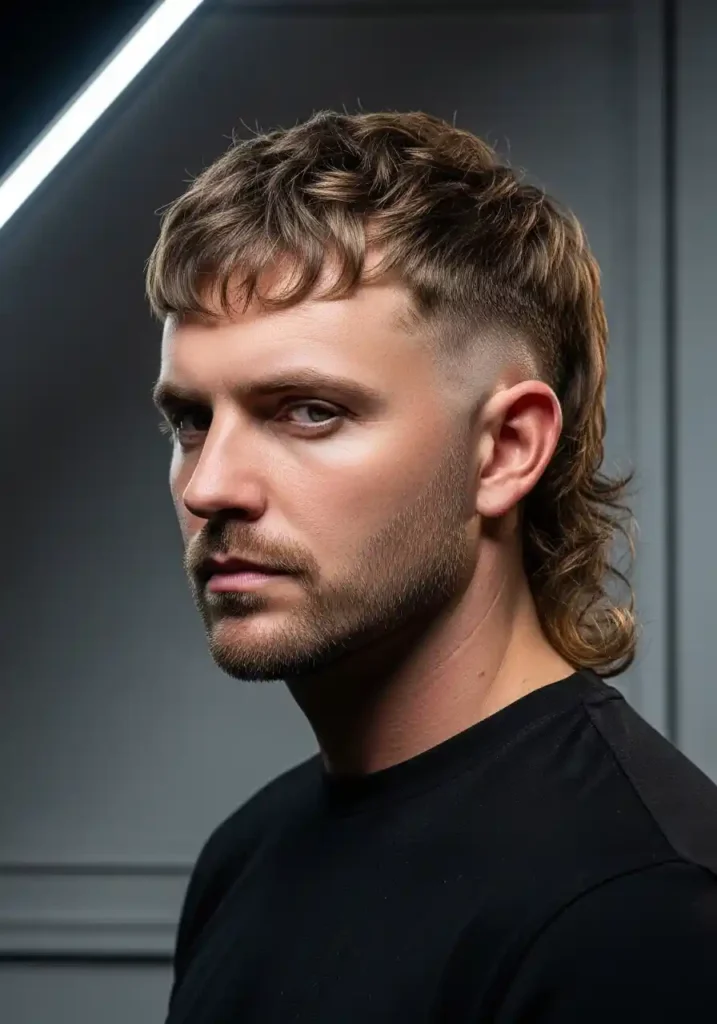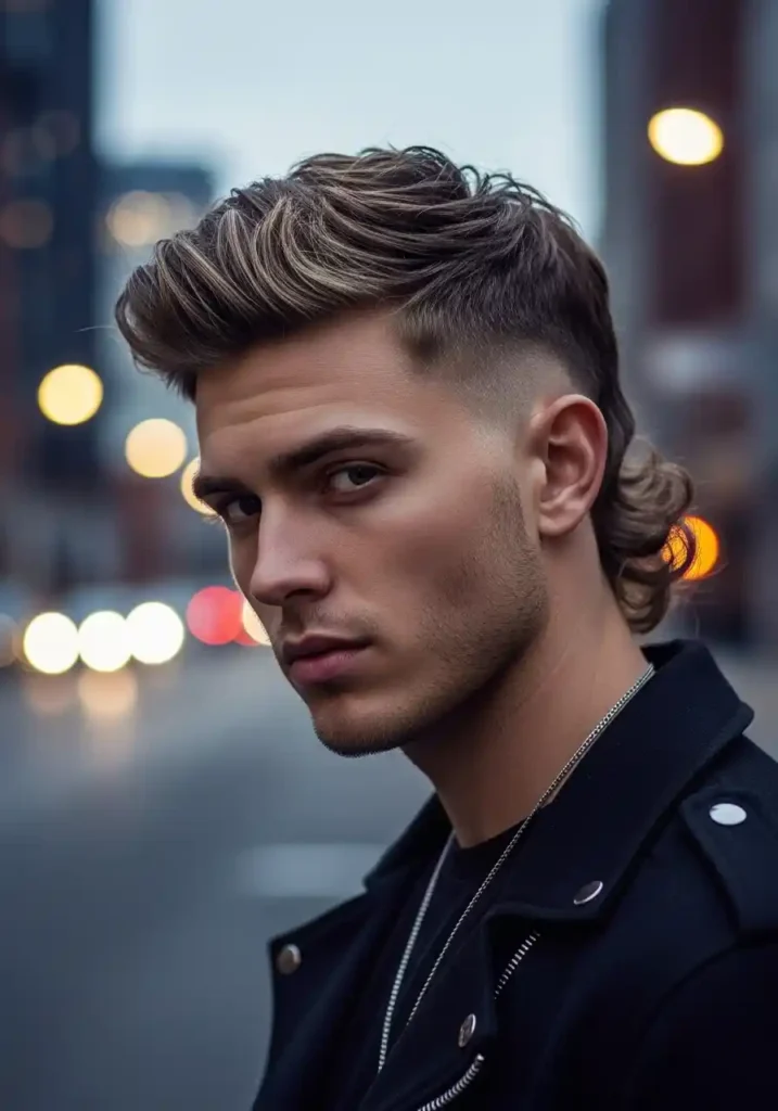 The precision of a well-executed fade within a mullet haircut communicates that the wearer takes his grooming seriously and understands that the boldest haircut choices are also the ones that require the most skilled professional execution to look their best. A fade that is expertly graduated, with absolutely no visible line between the faded sections and the longer hair above, creates an overall impression of genuine barbershop quality that makes the mullet read as sophisticated and intentional rather than simply alternative or deliberately unpolished. The fade also provides a clean visual framework that makes the contrast between the shorter sides and the longer back most clearly defined and most visually impactful. Touch-ups every two to three weeks keep the fade looking its sharpest.