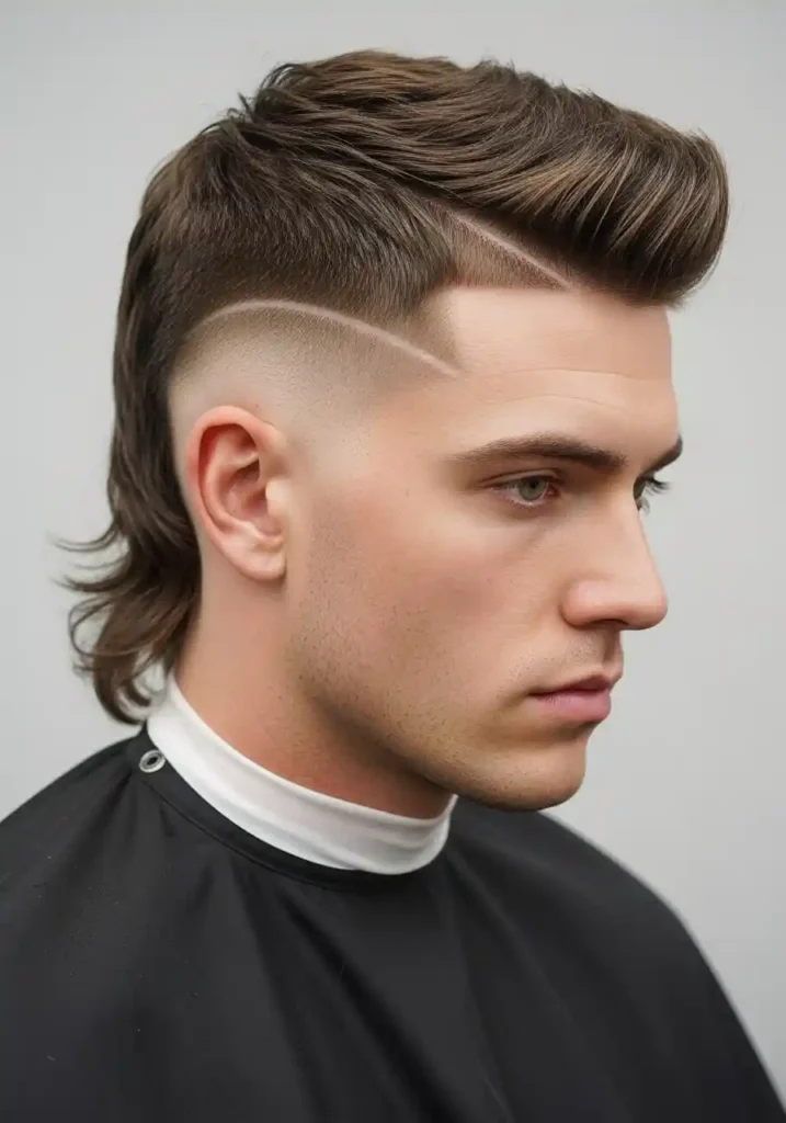 The mullet with a side part creates one of the most elegant and most surprisingly refined interpretations of the mullet concept, using the classic, dignified quality of a deep side part to bring a sense of vintage sophistication and deliberate grooming consciousness to a haircut that more casual styling approaches give a completely different character. The side part adds a directional quality to the top section of the mullet that creates a sweeping, slightly pompadour-adjacent impression at the front while the longer back retains the fundamental length contrast that defines the mullet’s essential character.