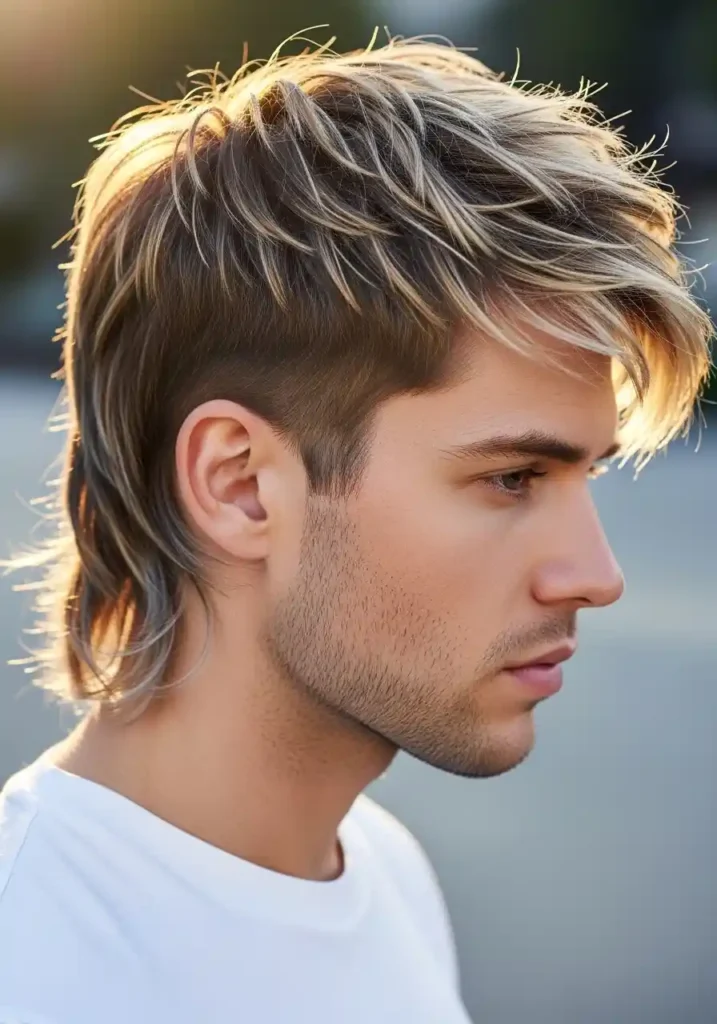 The specific placement of highlights within a mullet is a creative decision that can be approached in multiple ways, from natural-looking balayage through the longer back section that mimics the sun-lightening effect of extended outdoor exposure to more deliberately placed, higher-contrast highlight sections that create a bolder, more obviously colored impression. Natural, sun-kissed highlights within the longer back section of a mullet work particularly beautifully because they enhance the texture and movement of the longer sections while maintaining the overall organic quality that makes the mullet’s back section most visually compelling and most naturally beautiful. A UV protecting styling product maintains the highlight quality between professional appointments.