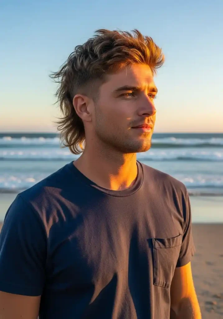The surfer mullet is the most relaxed, most organically conceived, and most genuinely lifestyle-connected interpretation of the mullet concept available, drawing from the specific aesthetic of surf culture and the specific qualities of hair that has been naturally shaped by salt water, sun, and the kind of active, outdoor lifestyle that treats excellent hair as a happy consequence of genuine living rather than a deliberately pursued grooming achievement. The surfer mullet has a warmth, a sun-kissed quality, and an effortless texture that communicates an authentic relationship with an outdoor, physically active lifestyle.