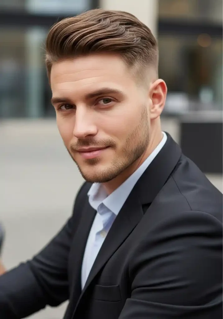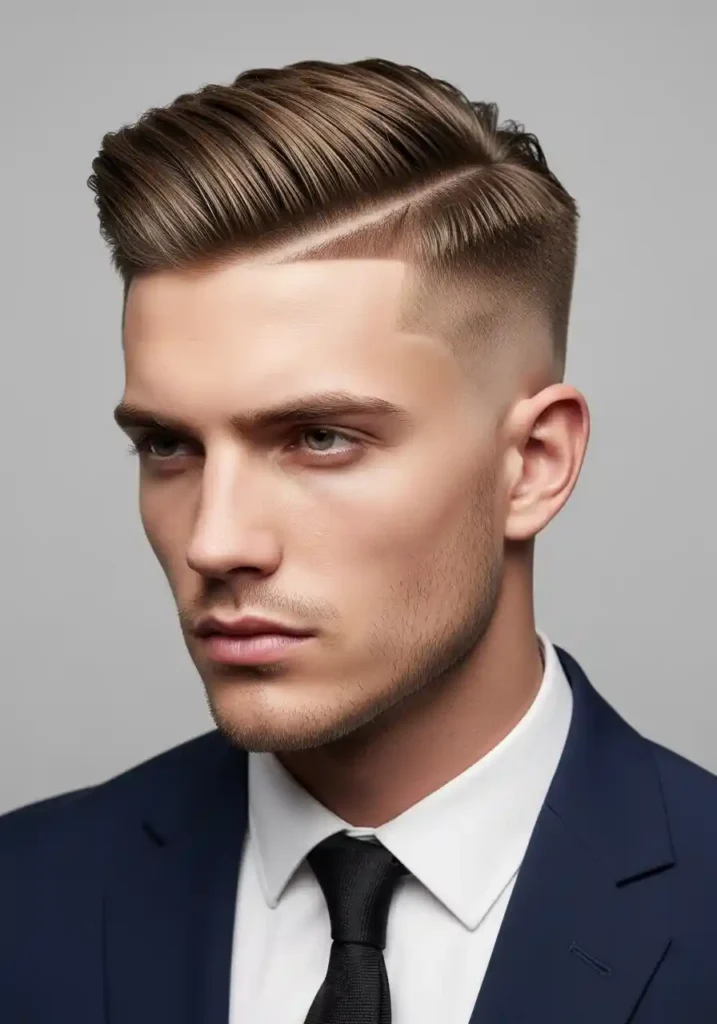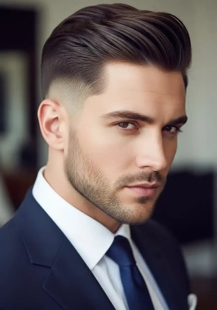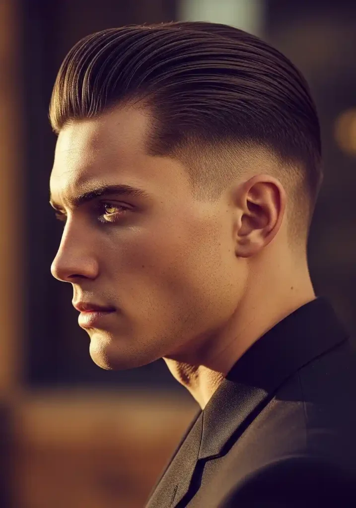 The specific product used to achieve the slicked back portion of this style significantly determines its overall character, with a high-shine pomade creating a more dramatically polished, almost lacquered finish that references classic men’s style traditions while communicating genuine grooming sophistication, while a matte clay or paste used to create a slicked-back effect produces a more contemporary, more understated version of the same backward-swept arrangement that reads as more casually powerful and more naturally confident. A wide-tooth comb or fine-tooth comb pulled through the product-loaded top section while blow-drying backward creates the most consistently clean and most reliably elegant slicked-back result across different hair textures and different daily styling contexts.