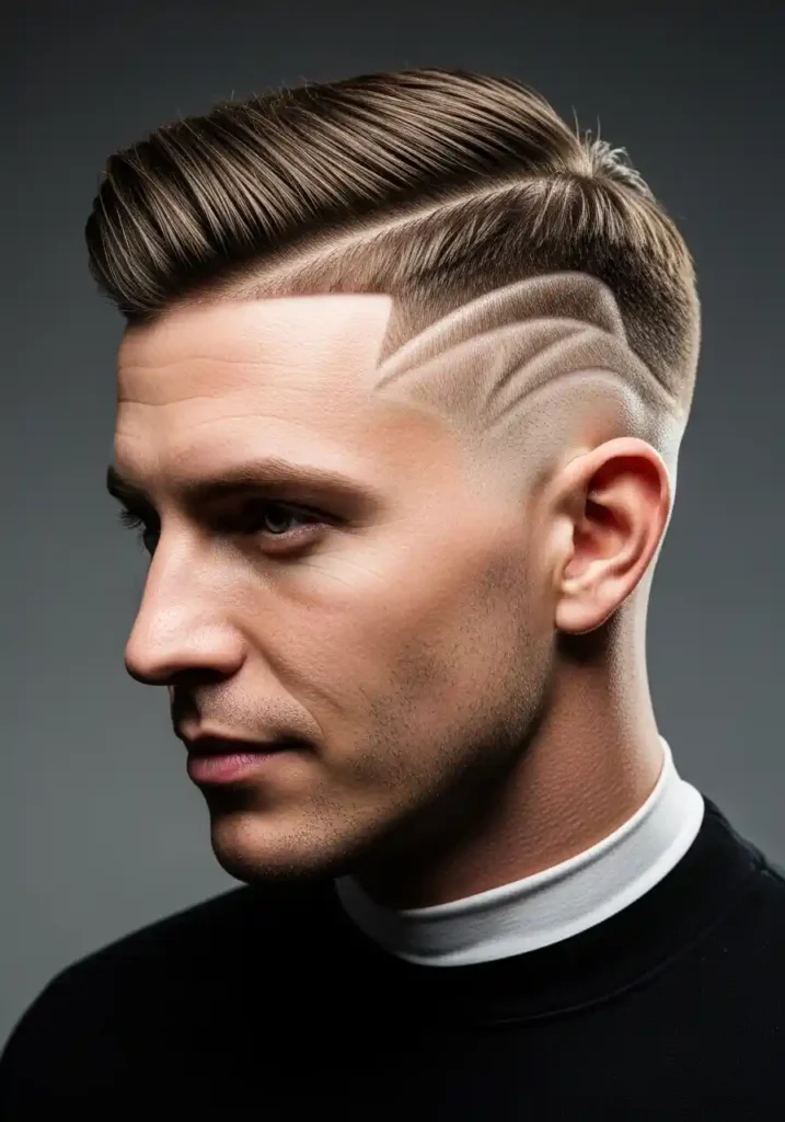 The undercut with a shaved geometric design on the sides adds the most explicitly artistic and most personally expressive detail available within the undercut family, using a clipper or razor to cut a specific geometric pattern, whether a series of lines, a specific shape, or a more complex abstract design, directly into the closely cropped side section of the undercut in a way that makes the haircut itself a piece of wearable art that communicates genuine creative individuality and a willingness to treat personal grooming as a form of authentic self-expression rather than simply maintenance.