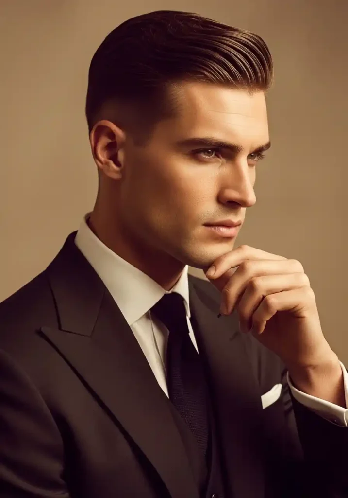 The slicked back undercut creates one of the most powerfully masculine and most deliberately sophisticated looks available in the entire undercut family, combining the clean, dramatic contrast of the undercut structure with a smoothly styled, pomade-polished top section swept back from the forehead to create an overall impression of bold, confident masculine elegance that suits formal occasions and powerful professional contexts with equal ease. The slicked back top complements the sharp sides by creating a unified direction of bold, backward movement throughout the styled section that makes the overall look feel intentional and commanding.