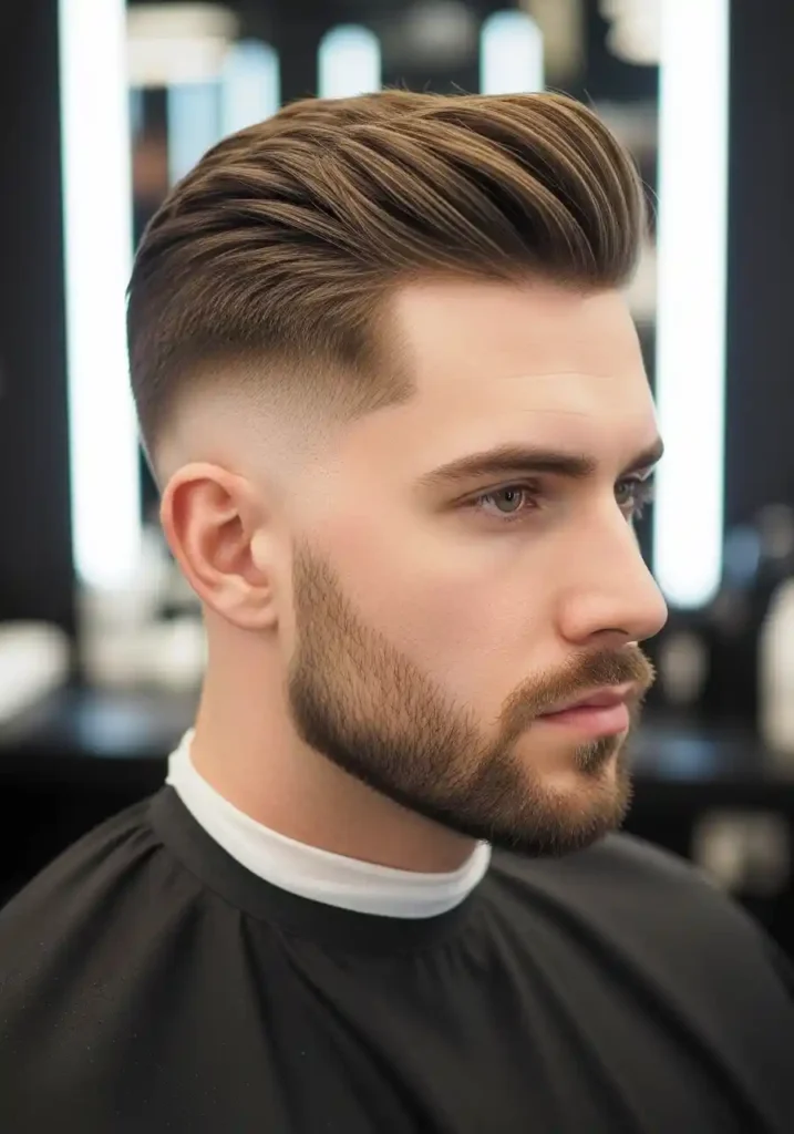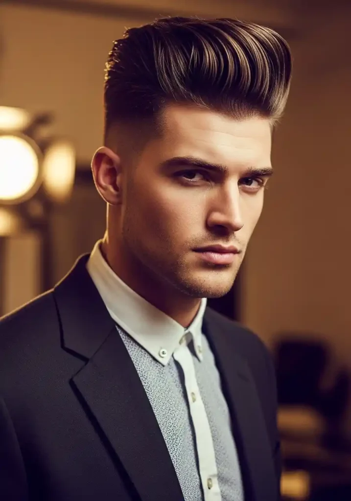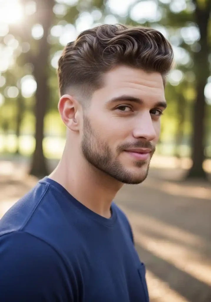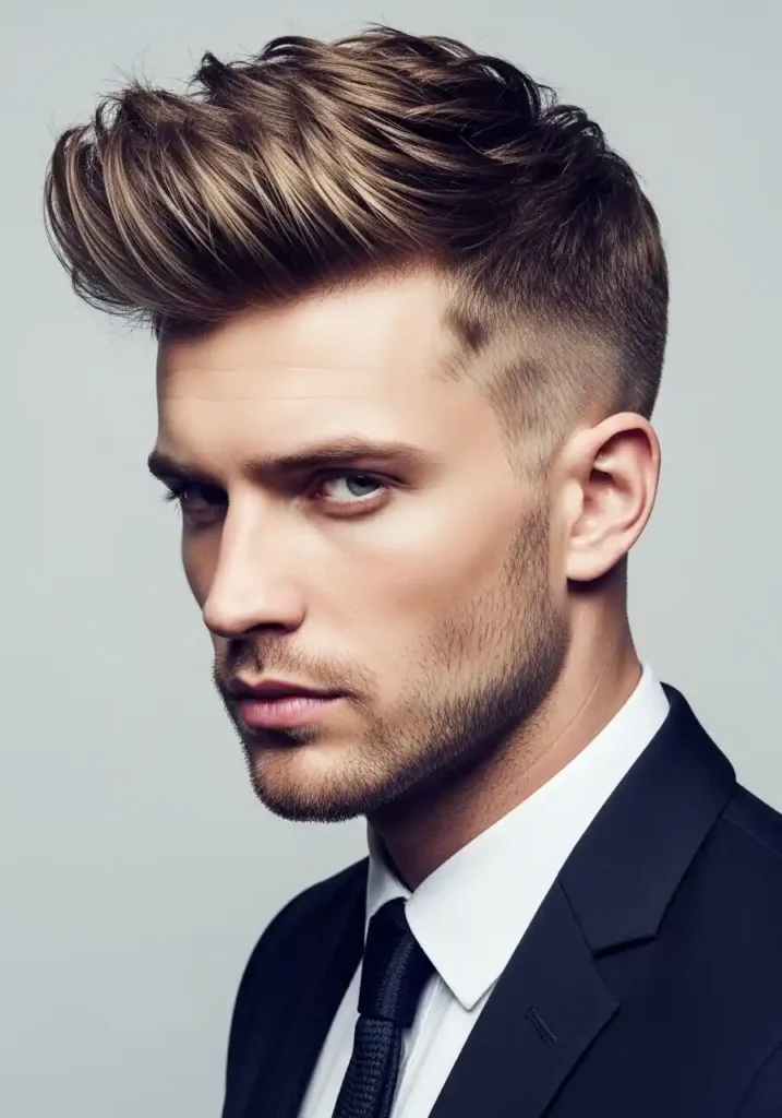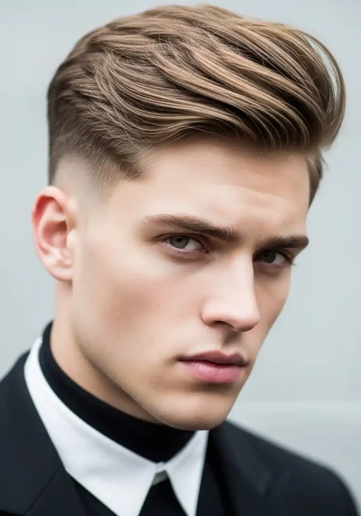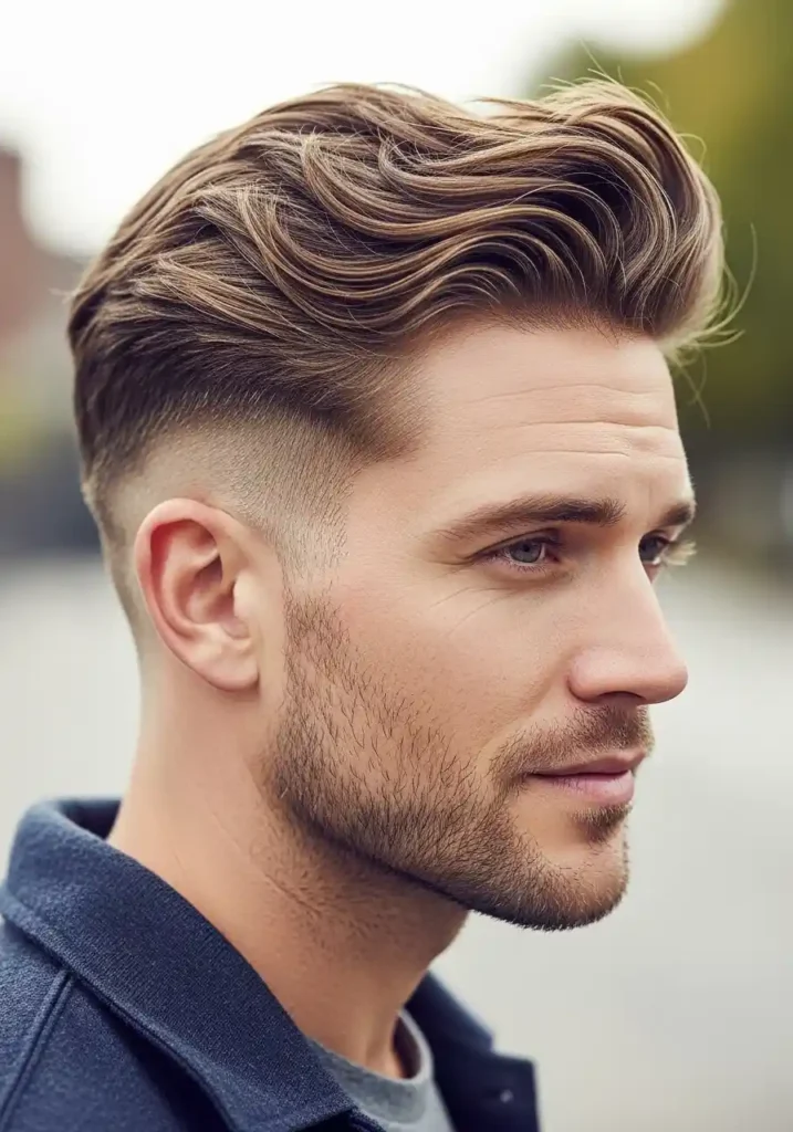 The textured undercut with quiff combines the bold architectural contrast of the undercut structure with the forward-swept, volume-forward aesthetic of a quiff to create a look of contemporary fashion-awareness and genuine stylistic sophistication that sits comfortably among the most current and most aspirationally saved men’s hair looks on Pinterest. The quiff adds significant vertical and forward volume at the front of the top section, creating a visual elevation that makes the overall silhouette appear taller and more dramatically proportioned while the textured quality of the quiff itself gives it an organic, naturally dimensional character.