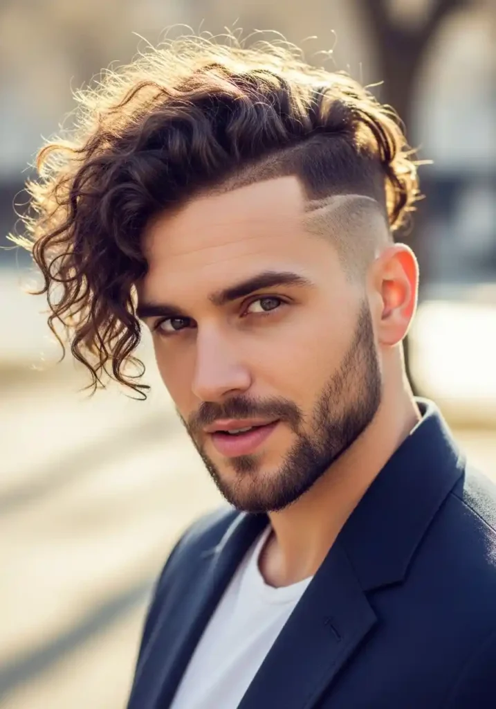 The undercut with a curly top creates one of the most boldly expressive and most visually spectacular interpretations of the undercut concept available to men with natural curl patterns, using the clean, precisely cropped undercut sides to create a clear architectural foundation above which the natural curls can express themselves with maximum dimensional richness and maximum visual impact in a way that the same curls without the undercut’s defining framework would display less dramatically and less intentionally. The undercut elevates the curls by providing them with a contrasting context.