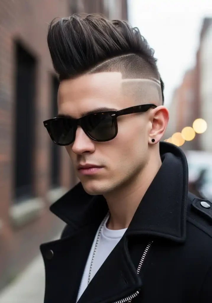 The mohawk styling within the undercut context involves applying a strong-hold product to the central strip of the top section and using a blow-dryer or hands to direct all of the top hair toward the center, creating a raised, central ridge of hair that sits above the shaved sides in a dramatically contrasted, architecturally bold arrangement that creates the classic mohawk silhouette with the clean, precise finish that the undercut’s closely cropped sides provide. The height and width of the central strip can be adjusted from a wider, more dramatic arrangement to a narrower, more refined central strip, allowing this look to be calibrated between maximum boldness and a slightly more restrained expression that retains the mohawk’s essential character while appearing more context-appropriate for certain daily settings.