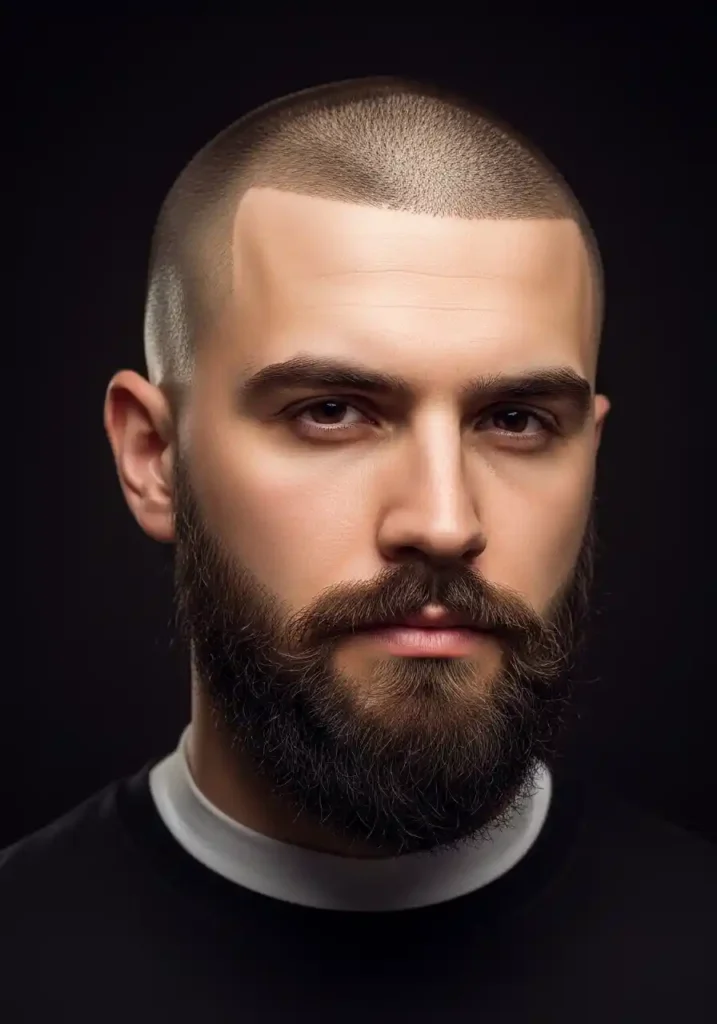A bald fade transitioning into a well-maintained beard creates the most complete and most specifically powerful modern groomed men’s aesthetic — the combination of the close-faded hair and the well-defined beard creates a continuous facial framing that showcases the jaw and the features with maximum masculinity and maximum clean definition. The beard specifically transforms the bald fade from simply a short hairstyle into a complete, comprehensively designed masculine aesthetic of genuine power and genuine confidence.