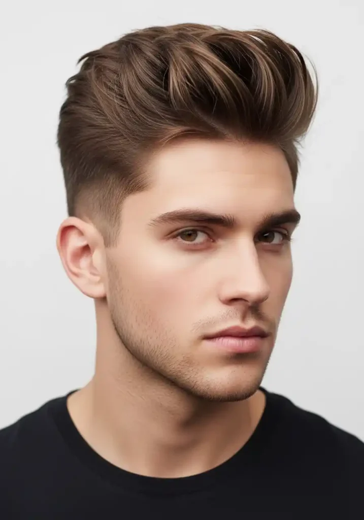 The modern quiff with tapered sides creates one of the most classically stylish and most specifically contemporary men’s hairstyles available — the lifted, directional front sections create the quiff’s characteristic upward momentum and face-framing warmth while the tapered sides provide clean architectural definition that gives the overall style its specifically modern, designed quality. The quiff’s combination of classic volume and contemporary clean sides creates a hairstyle with genuine versatility across professional and casual contexts.