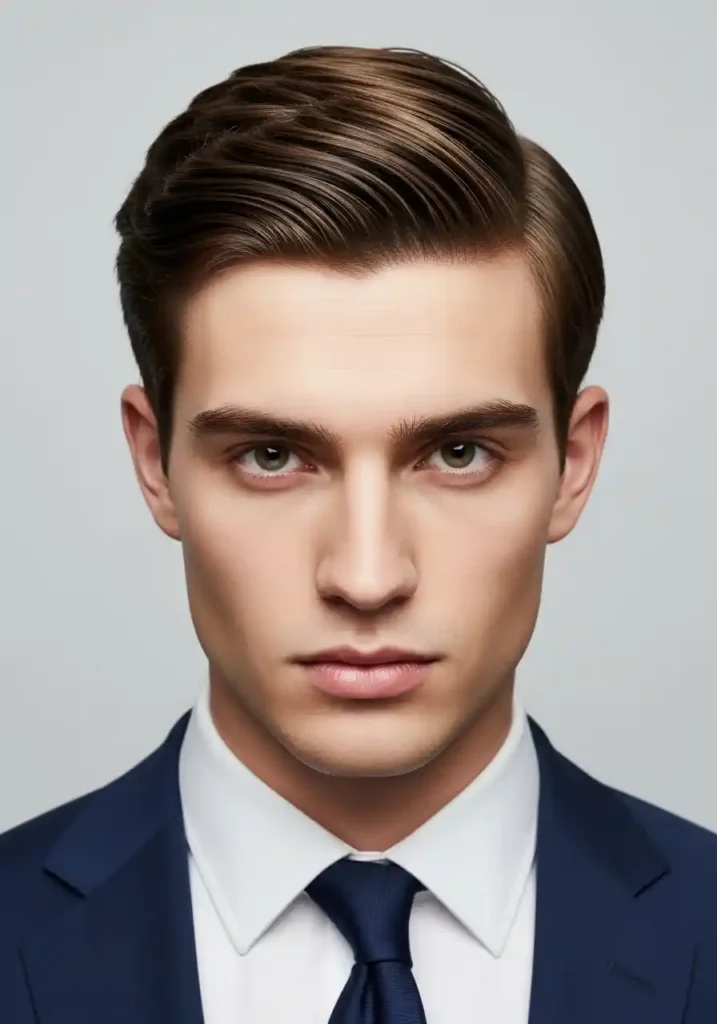A side part business cut creates the most classically modern and most professionally versatile men’s hairstyle available — the defined side part creates a clean, elegant directional movement that references the most enduringly stylish tradition of men’s grooming while the contemporary proportion and natural texture expression gives the cut a specifically current quality that prevents it from appearing dated or overly formal. The side part business cut works beautifully in professional, social, and creative contexts simultaneously.