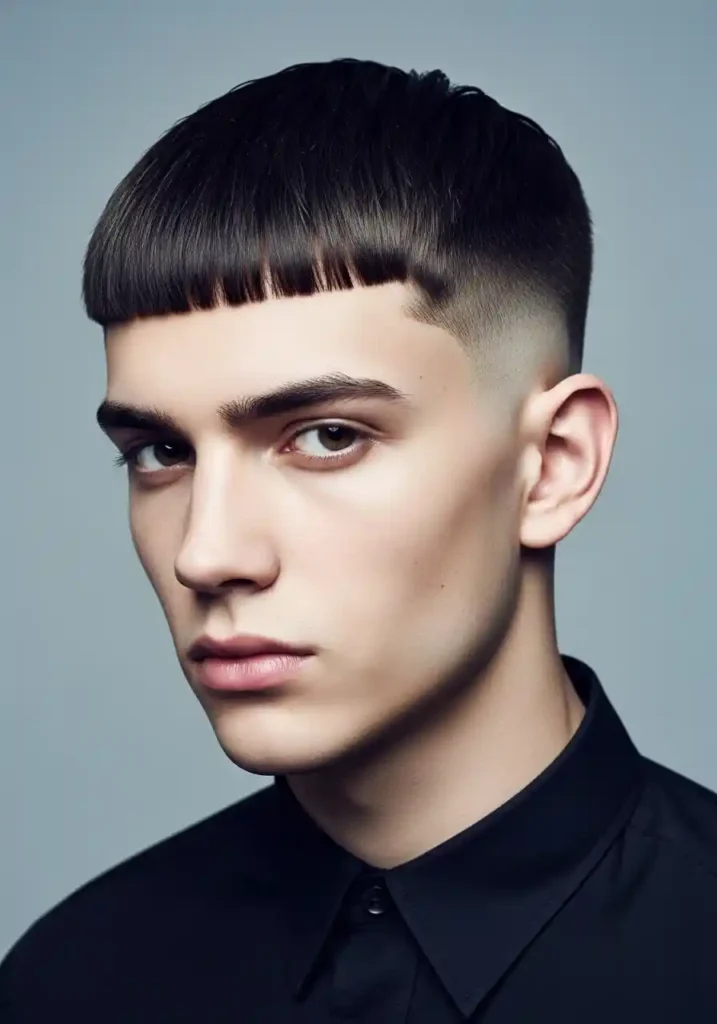 The Edgar cut — defined by its characteristic horizontal blunt fringe that cuts directly across the forehead at or above the brow level combined with clean fade sides — is one of the most graphically bold and most specifically dominant men’s haircut trends of the current moment. The Edgar’s defining horizontal fringe creates an immediate, unmistakable statement of complete aesthetic boldness that reads as the most specific and the most deliberate men’s haircut choice available, communicating complete individual character and complete grooming confidence.