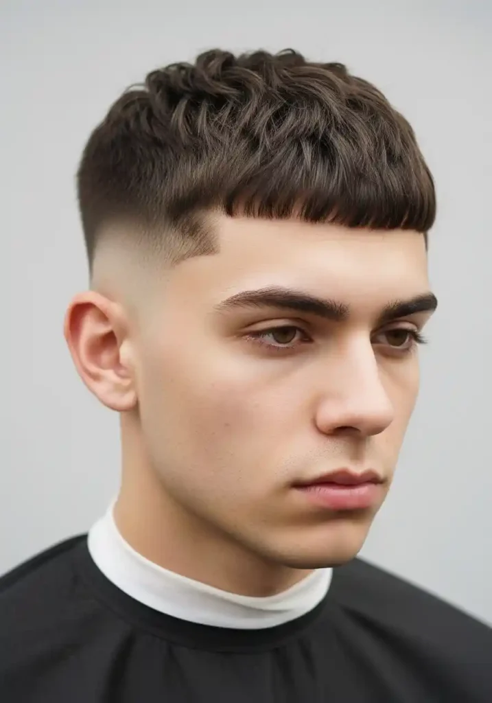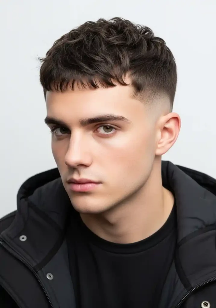 The specific evolution of the French crop in the current trend moment moves toward more aggressively textured top sections — the horizontal fringe becoming more deliberately textured and more specifically piece-y through aggressive point-cutting that gives the French crop’s characteristic fringe element an additional quality of textural personality beyond simple horizontal definition. A matte clay applied to the dry fringe section and worked through with the fingertips creates the most specifically textured and most dominantly contemporary French crop fringe expression. Maintain with a professional trim every three to four weeks.