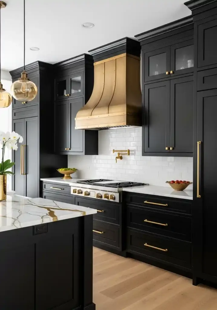 4. The Bold Black and Brass Kitchen: The Most Opulently Modern Cabinet Combination