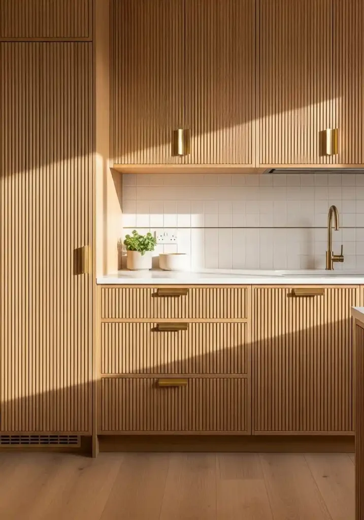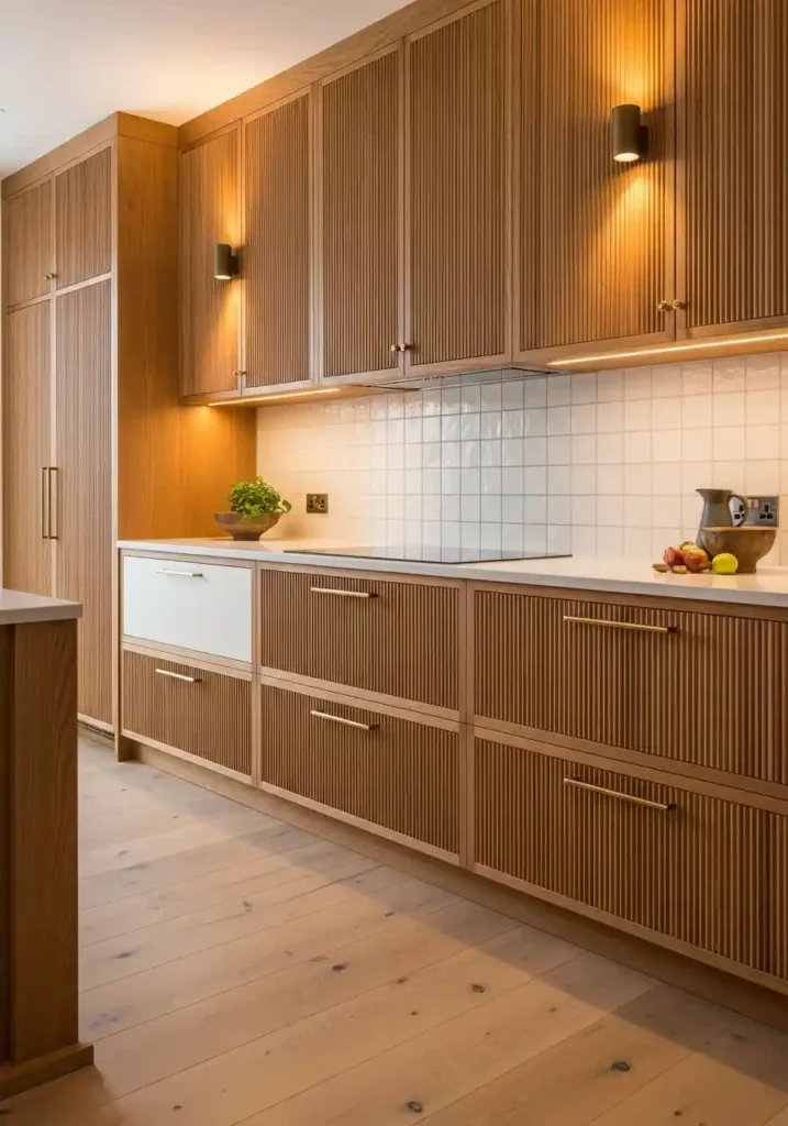 3. The Fluted Oak Cabinet Kitchen: Handcraft Texture for the Modern Home
