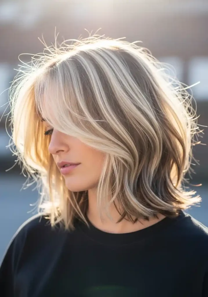 The interaction between the shaggy bob’s layers and the distributed babylights is what makes this combination so spectacular, as the varied depths created by the layers mean that the babylights are constantly being revealed and concealed as different sections of the cut move in and out of direct light. This creates a living, dynamic quality in the hair color that static, uniformly lit hair simply cannot achieve, making even simple, everyday movement look like a professional hair photography moment. The natural-looking quality of babylights means this combination has an exceptionally long and graceful grow-out that requires refreshing only every four to six months.