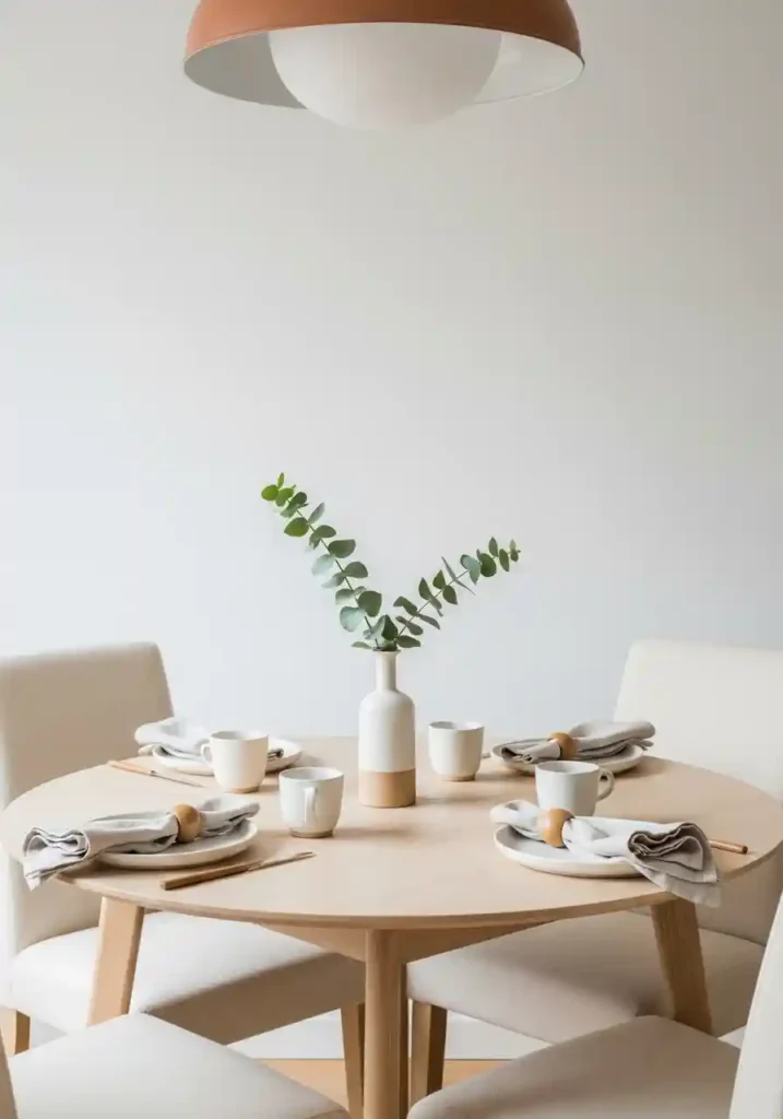 Extreme centerpiece restraint on a small dining table creates spatial generosity through visual clarity rather than physical change. An over-styled centerpiece with multiple objects at various heights — as most small dining rooms suffer from — divides the table surface into a collection of smaller visual units that make the table appear both cluttered and smaller than it actually is. A single beautifully chosen object in a carefully selected vessel on an otherwise clear table surface allows the table’s full dimensions to be visually registered, making the table appear larger and the surrounding room feel more generous as a direct consequence of the surface’s visible expanse.