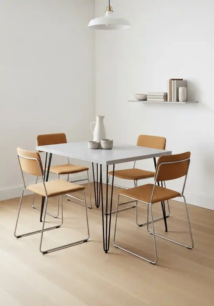 Choosing slim-profile furniture throughout a small dining room creates spatial generosity through visual lightness rather than dimensional reduction. Every furniture piece with visible floor clearance beneath it — a table on slim legs, chairs on thin metal frames, a floating sideboard rather than a floor-standing unit — contributes to the perception of continuous floor that makes the room read as significantly more open than solid, heavy furniture of equivalent functional capacity would allow. This principle is directly parallel to the visual effect of transparent furniture but achieved through the honest exposure of elegant structural forms rather than optical invisibility.