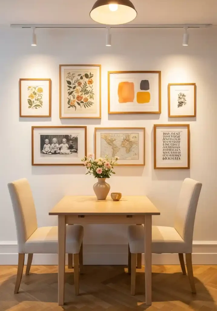 22. The Gallery Wall Above a Small Dining Table