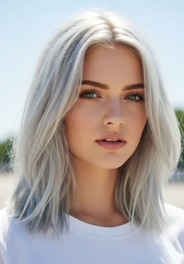 The summer benefit of cool icy tones is the specific, fresh quality they create in the season’s warm outdoor light conditions — where warm blondes harmonize with summer’s warmth, icy cool tones create a specific tension of cool hair in warm summer light that is particularly sophisticated and particularly fresh-feeling. A silver depositing shampoo weekly prevents UV-induced yellowing in the icy sections, and a professional cool silver toning gloss every five to six weeks maintains the characteristic cool freshness of the icy tones throughout the summer season.