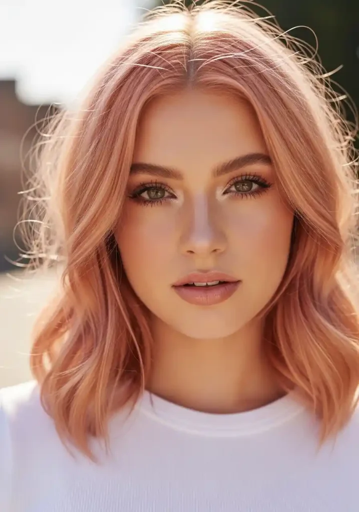 Bright rose gold creates the most romantically vibrant and most specifically summer-pink-warm color expression available — the vivid combination of warm pink and golden-warm tones creates a summer hair color of extraordinary romantic brightness that catches summer’s abundant warm light with a warm-pink luminosity that appears most magnificently beautiful in the specific light conditions that summer provides. Rose gold in summer sunshine has a specific warm-pink radiance that is completely unique to this color in this season.