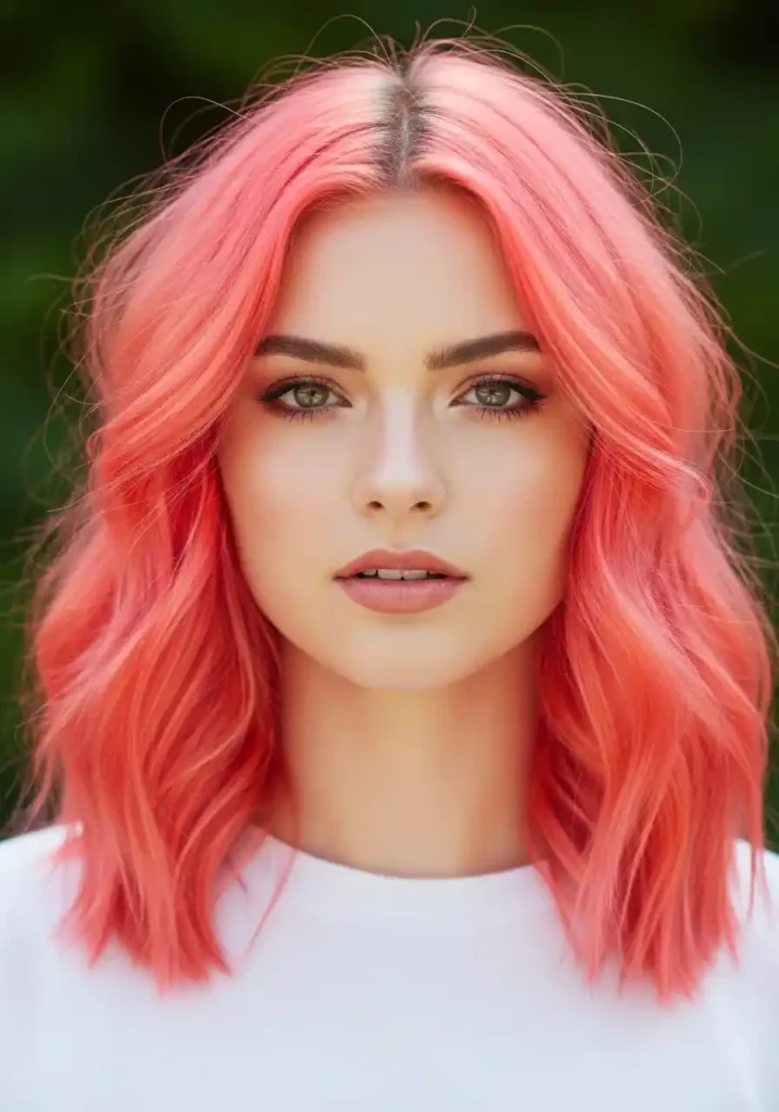The vivid coral requires a pre-lightened blonde base for its most brilliant expression — the warm orange-pink deposits most vibrantly over a pale blonde foundation that allows the coral’s full warmth and brightness to be expressed without the darkening effect of darker underlying pigment. A coral depositing conditioner weekly and a professional coral toning refresh every six to eight weeks maintains the vivid summer brightness. Style with texture spray and natural movement for the most summer-appropriate and most vibrantly fresh coral expression.