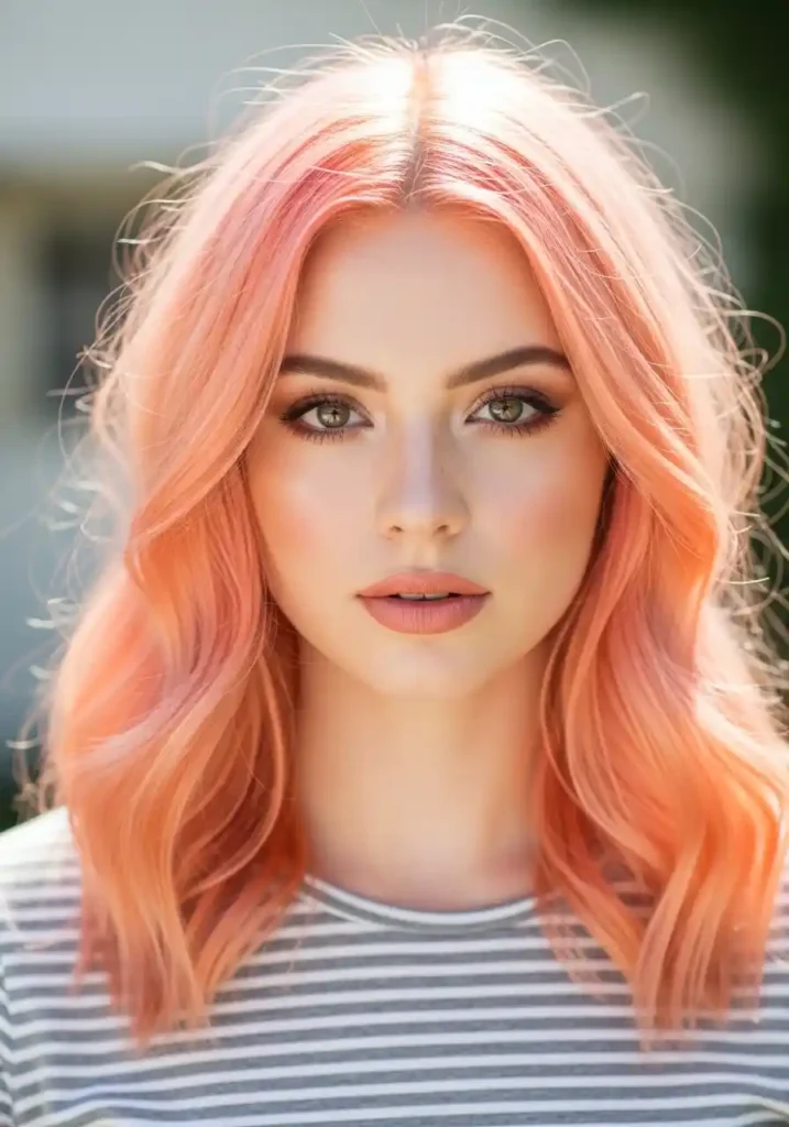 Vivid peach hair is the most summer-perfect and most warmly vibrant fashion color available for the bright season — the specific warm peachy-orange-gold of true vivid peach creates a color of extraordinary brightness and warmth that photographs with almost supernatural luminosity in summer’s abundant outdoor light and appears most magnificently bright and most joyfully warm in the specific light conditions that summer provides more abundantly than any other season. Peach hair in summer sunlight is genuinely extraordinary.