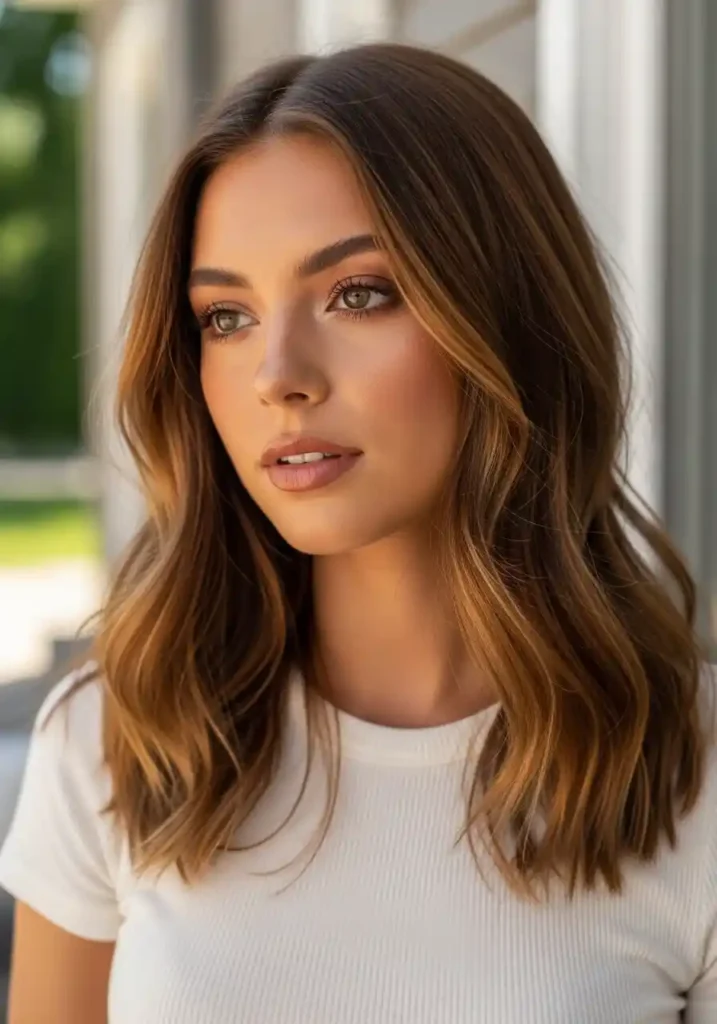 The golden tone specifically creates the summer quality — its warm, amber-gold brightness photographs with extraordinary warmth in summer’s abundant natural light and creates the most specifically sun-kissed and most genuinely warm face-brightening effect available through any partial highlight technique. A warm golden gloss every eight weeks between appointments maintains the sun-kissed warmth throughout the complete summer season. Style with a salt spray and allow to air dry for the most authentic beach-touched summer balayage expression that channels the season’s most specific beauty.