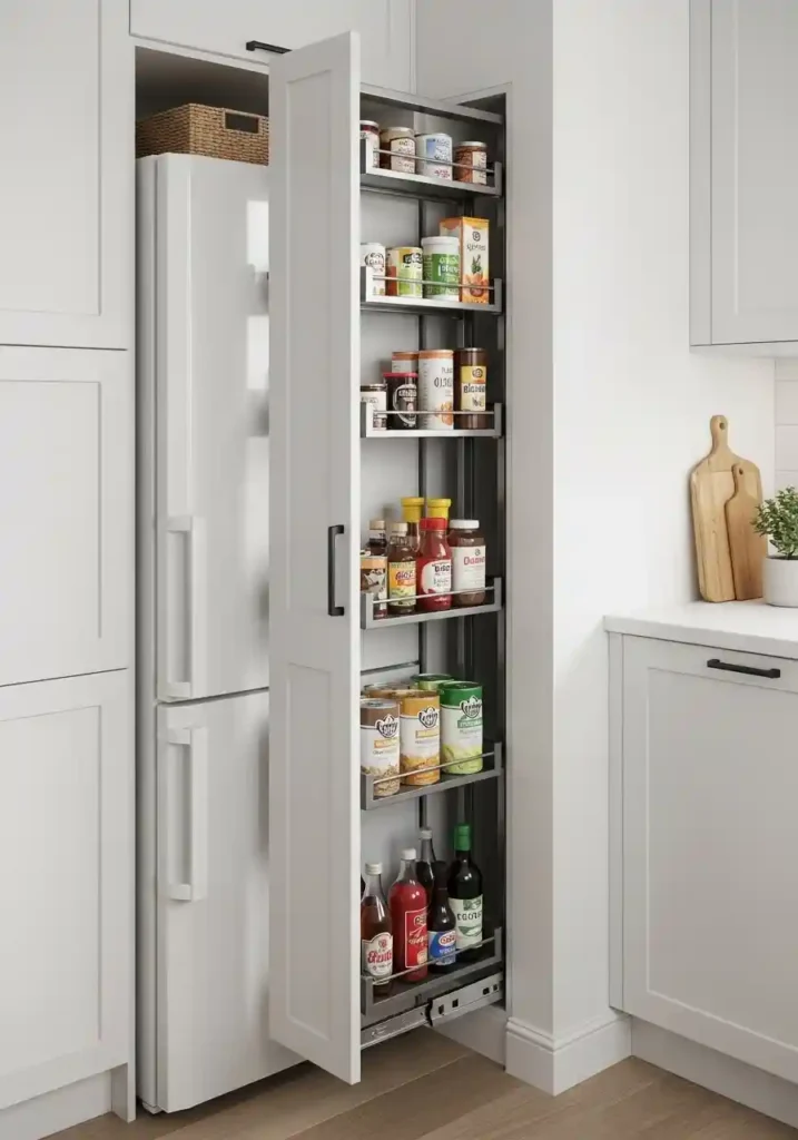 5. Pull-Out Pantry Tower for Narrow Space Utilization